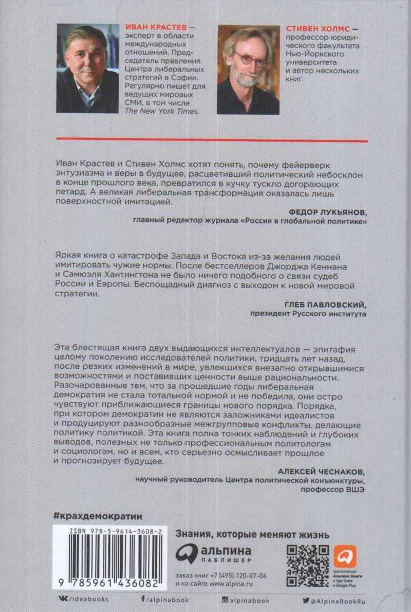 Крастев и Холмс не дают рецепта новой идеологической платформы для всего мира, но объясняют, в чем причина роста национализма и авторитаризма во многих странах.