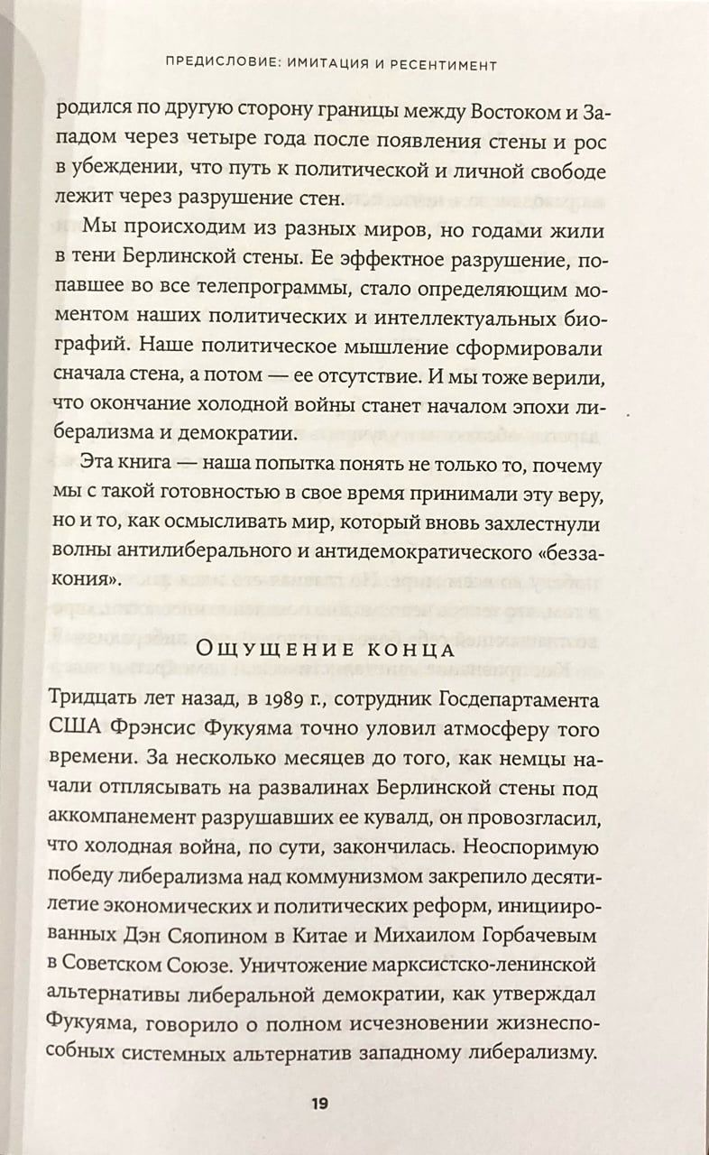 Эпоха великих перемен, которая, как считалось, наступила после краха коммунизма и «конца истории», стала временем не реальной трансформации государств по западной модели, а имитации, часто — весьма поверхностной. Но притворство рано или поздно приводит к обратной реакции. Через три десятилетия игры по западным правилам многим «ученикам» надоело терпеть моральное превосходство «учителей» — тем более что сами страны Запада оказались далеки от идеала, что показали многочисленные случаи коррупции, военных преступлений, пренебрежения правами человека и ограничения свободы слова.