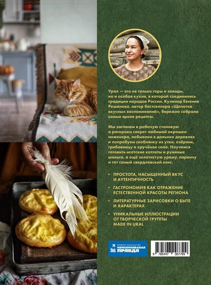 Урал – не только манящие горы и мощные заводы, но и особая культура кухни, с крепким характером и таёжным вкусом. Кулинар Евгения Решанова, автор бестселлера «Щепотка вкусных воспоминаний», бережно собрала коллекцию ярких и значимых рецептов региона, которые можно приготовить дома в любой точке страны. Мы заглянем в рабочую столовую, раскроем секрет любимой окрошки инженеров и узнаем за что они так ее ценят. Отправимся в укромные уральские деревни, где готовят скоблянку из утки, озерник, грибовницу и крученое сало. Научимся делать исетские котлеты и румяные шаньги, разберемся в тонкостях простых, но выразительных блюд. А к душистому травяному чаю подадим золотистую ураму, паренчу и тот самый свердловский кекс. От печи до духовки, от старых бабушкиных тетрадей до современной кухни внучки – с заботой и теплом из сердца России.