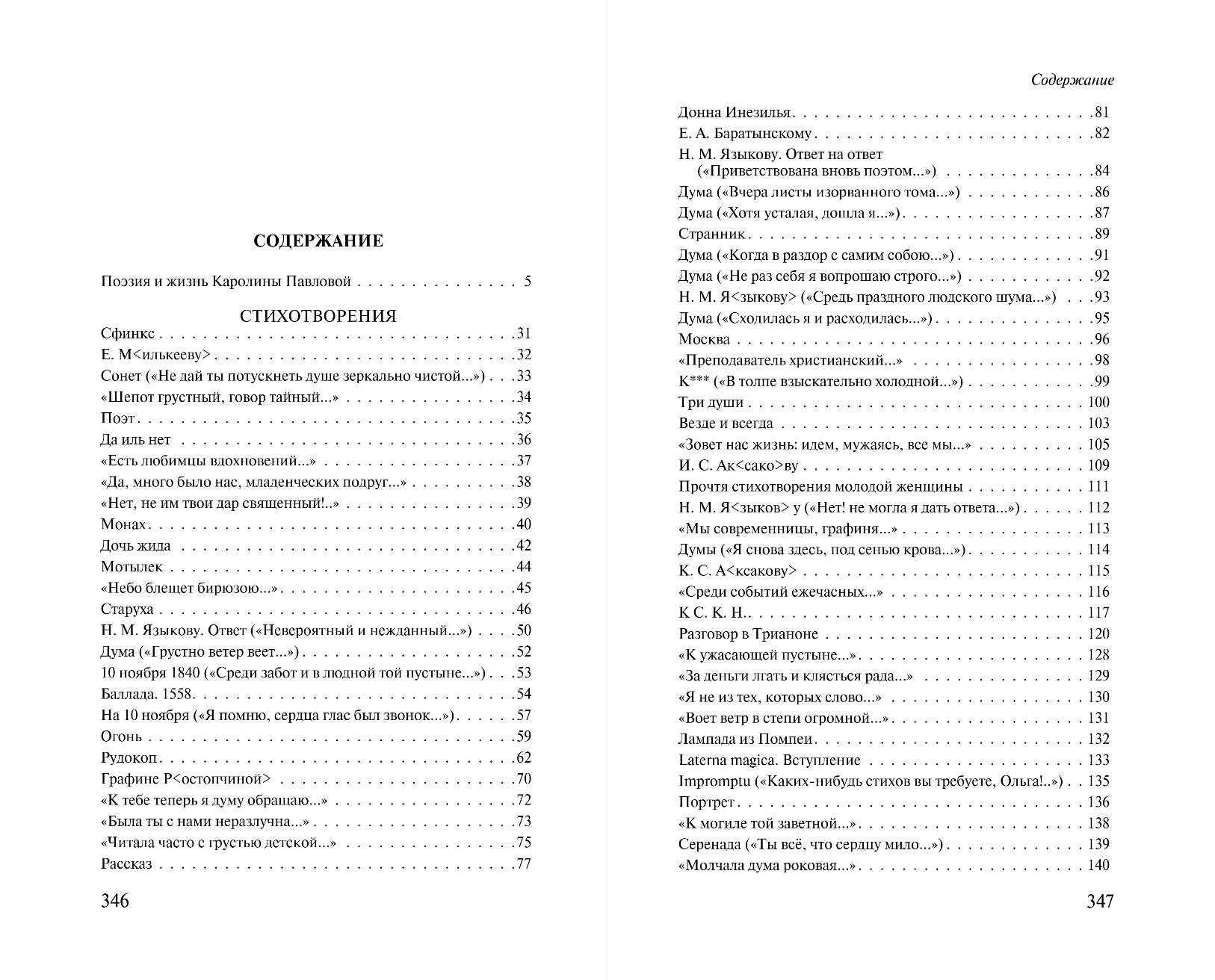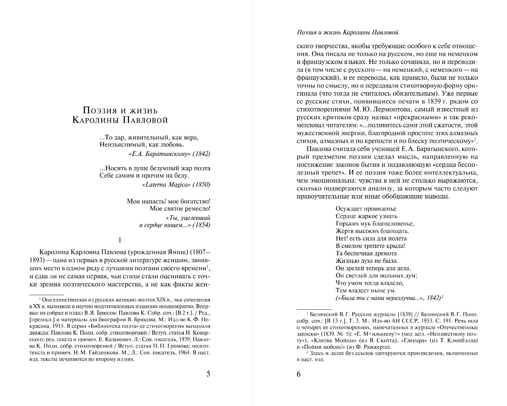Каролина Павлова прожила почти сто лет — родившись в начале XIX века в семье обрусевшего немца, Павлова стала заметной фигурой в литературе той эпохи. Её постоянными собеседниками были лучшие поэты поколения — Пушкин, Баратынский, Языков, Мицкевич, и она по праву занимала среди них равное положение. Стихи Павловой, печатавшиеся в известных журналах, нужно воспринимать наравне с сочинениями признанных классиков отечественной поэзии. Энергию её стихотворений, обладающих гипнотизирующей интонацией и необычной образностью, можно сравнить с текстами Эмили Дикинсон — младшей американской современницы Павловой, творившей в затворничестве. Павлова, в отличие от Дикинсон, была известна при жизни, но осталась в тени эпохи, лишь изредка появляясь в посвящениях и письмах более прославленных современников. Нет сомнений, что сейчас настало время заново открывать её творчество, и настоящий сборник даёт возможность не только познакомиться со стихотворениями и прозой Павловой, но и узнать больше о её жизни и творчестве из подробного предисловия литературоведа, специалиста по истории русской литературы XVIII—XIX веков Владимира Коровина.