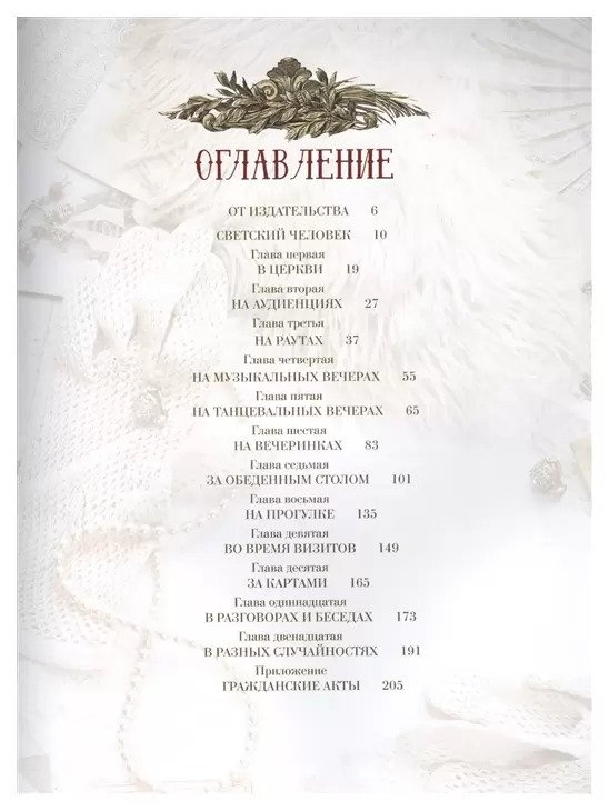 В России во все времена быть светским человеком означало иметь прекрасные манеры, утонченный вкус и пользоваться уважением окружающих. Перед таким человеком открывались двери лучших домов и появлялись реальные перспективы служебного роста. По сути, хорошие манеры давали ключ к успеху. Несмотря на изменение внешних обстоятельств, наши представления о светских манерах в основном остались прежними. Сегодня тоже в чести вежливость, обходительность и умение правильно себя вести в любой ситуации. Лучшим руководством для тех, кто хочет следовать правилам хорошего тона, является эта книга, впервые увидевшая свет в 1880 году. Светские балы, приемы, музыкальные вечера, встречи за обеденным или карточным столом - все это увлекательно, со множеством интереснейших подробностей из жизни петербургского бомонда XIX века описано в этой книге. А великолепные произведения мировой и русской живописи дают нам возможность погрузиться в атмосферу подлинной светской жизни.