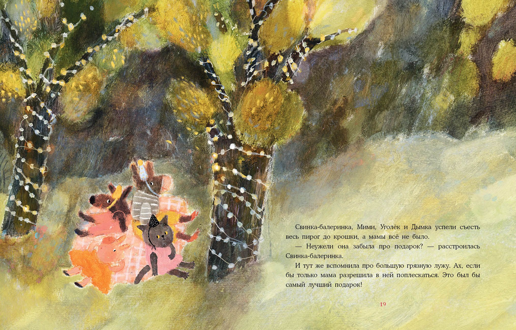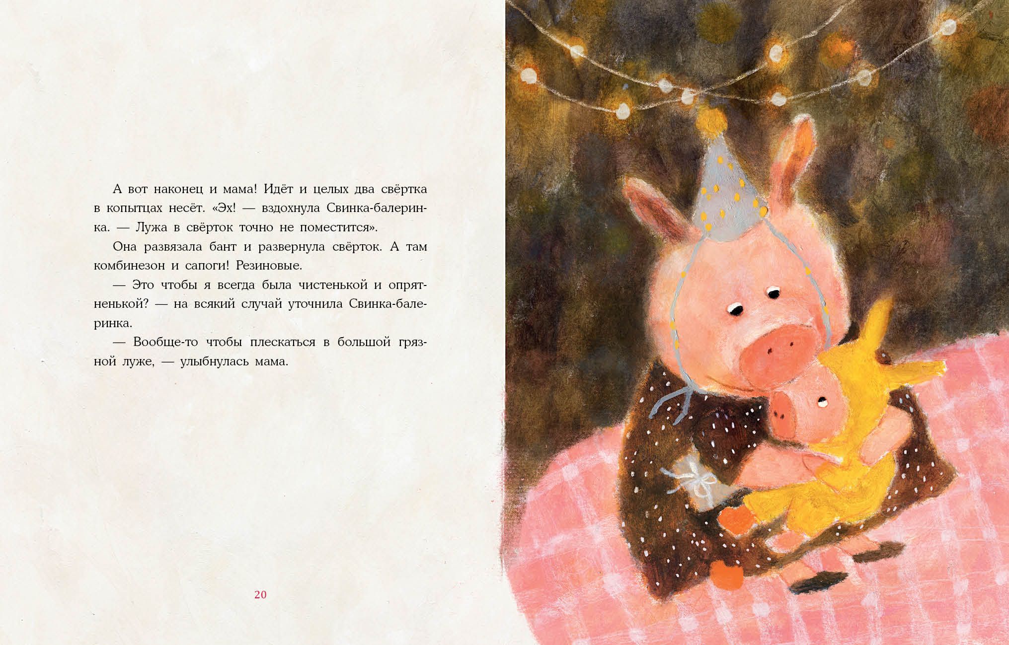 У Свинки-балеринки сегодня день рождения, и её самое большое желание в этот день - плескаться в большой грязной луже! Вот только мама не разрешает свинке пачкать новое красивое платье - ведь она девочка, и должна всегда быть чистой и опрятной. Вскоре в гости приходят друзья с подарками. Свинка очень рада - однако она пока не знает, что самый лучший подарок ждёт её впереди! Книга проиллюстрирована забавными рисунками Натальи Шалошвили.