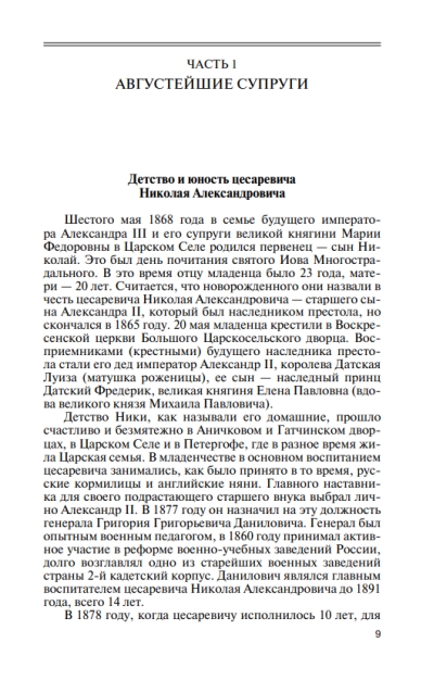 Долгое время последняя Царская семья Дома Романовых, основой которой стали любовь и глубокая привязанность Августейших супругов, подвергалась циничной и предвзятой критике как со стороны «просвещенного общества» и элиты, так и ближайших родственников. Со времени революции члены Царской семьи больше не рассматривались в качестве реальных людей, был создан образ, построенный целиком на идеологических клише. Эта книга — попытка в какой-то степени восстановить справедливость, очистить от идеологических наслоений реальные образы членов Царской семьи, отринуть горы лжи, десятилетиями закрывавшей чистые, благородные образы оболганных людей. Если убрать все политические споры и идеологические мифы и всмотреться в Царскую семью как в реальных людей, увидеть в них личности, то в результате можно изменить и само отношение к недавней истории России.