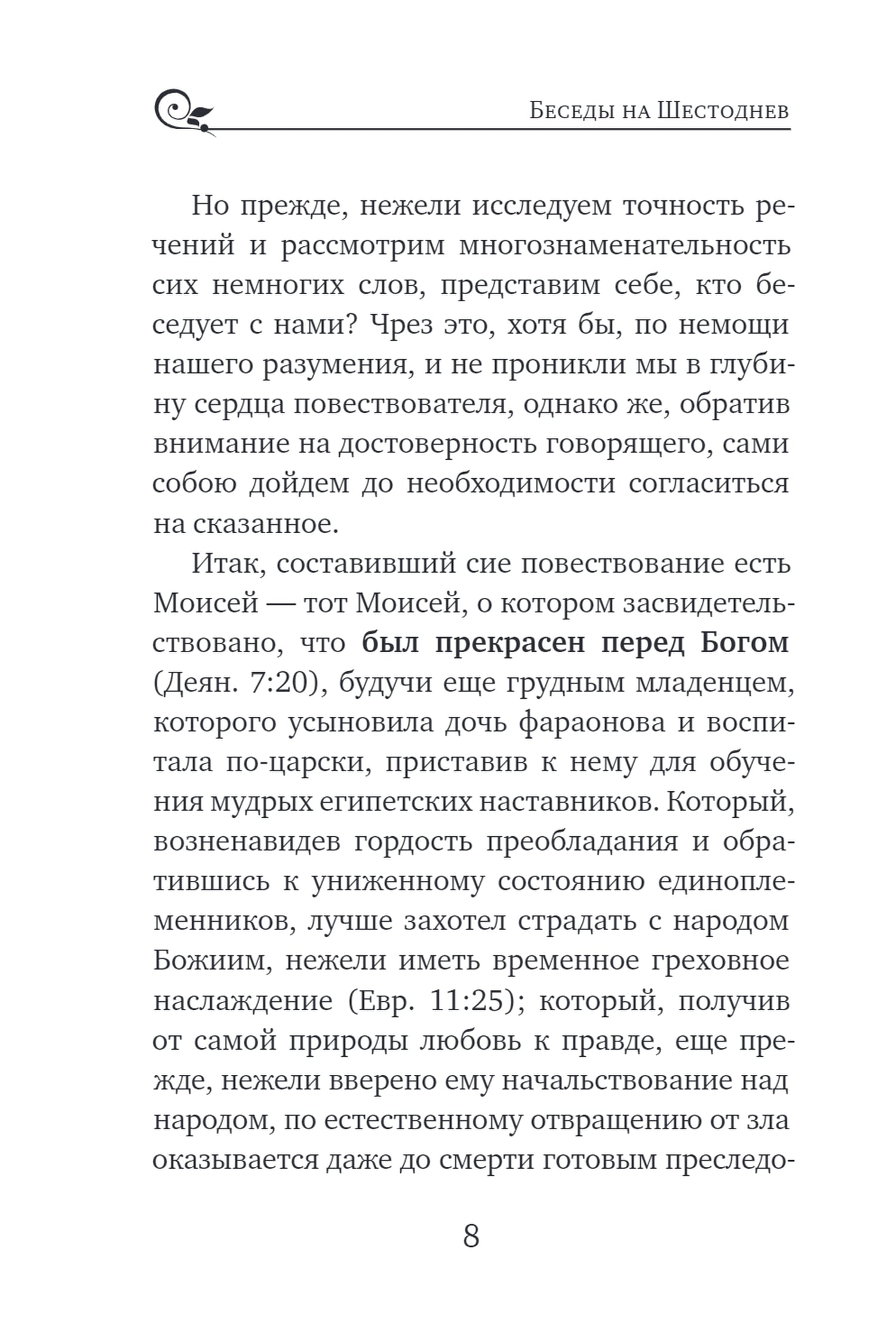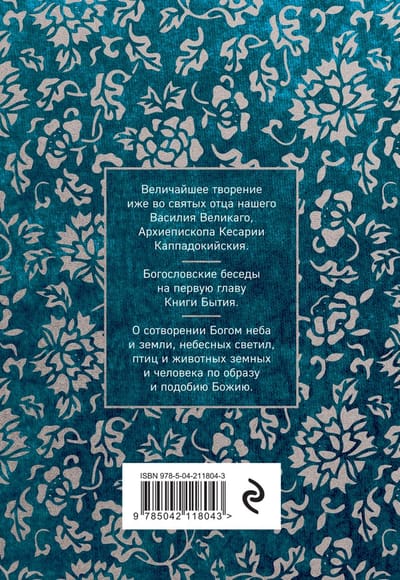 Богословское послание Василия Великого «Шестоднев» — это девять бесед на первую главу Книги Бытия, в которых доступно излагается христианский взгляд на вопрос о том, как возник мир, кем и каким образом он был создан, на чем держится мироздание, как возникают важнейшие природные явления. Рассматривая удивительные примеры из жизни живой природы, святитель Василий делает выводы, назидательные для христианской души.