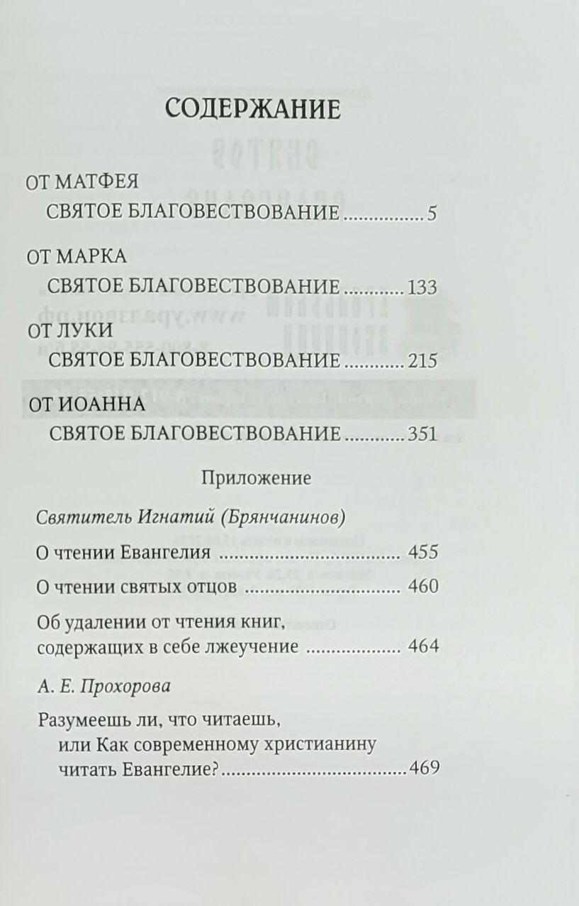 Данное издание помимо самого текста Святою Евангелия содержит приложение, которое мы рекомендуем прочесть перед Евангелием, чтобы получить большую пользу, так как приложение подготавливает читателя к более мерному пониманию Священного Писании.