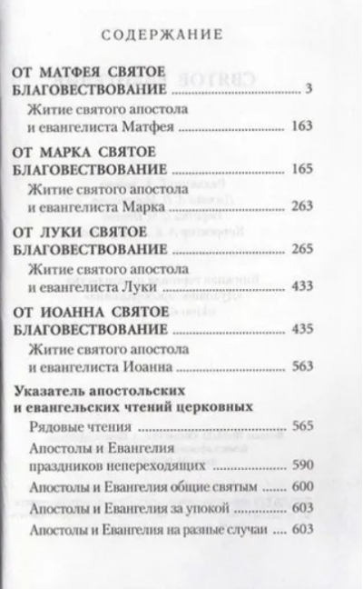 В настоящем издании для удобства чтения Святое Евангелие на русском языке представлено с выделением слов Спасителя жирным шрифтом. Для быстрого поиска вверху страницы означены глава и стихи, расположенные на ней. После каждого Евангелия помещено житие святого евангелиста, а в конце книги — указатель апостольских и евангельских чтений на каждый день года.