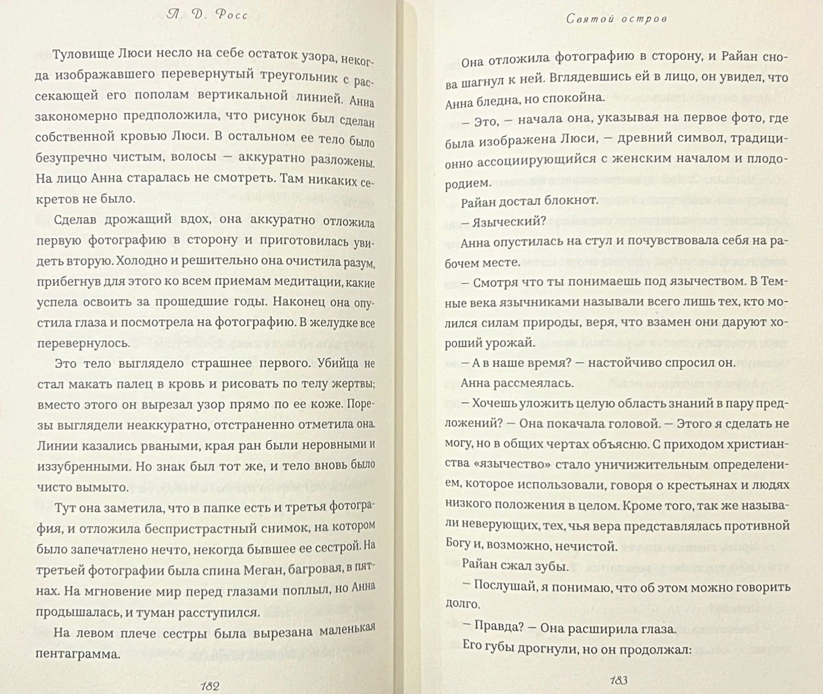 В это же время доктор Анна Тейлор, выросшая в здешних местах, возвращается на остров в качестве консультанта полиции. Она и Райан пытаются выследить убийцу, который прячется у всех на виду. Анну одолевают тяжелые воспоминания, она снова оказывается лицом к лицу со своим трудным прошлым. А в это время языческие ритуалы и обычаи маленького городка мутят воду их расследования. Убийство и детективная линия приправлены романтикой и юмором в этом динамичном криминальном детективе. Его действие разворачивается на живописном нортумбрийском острове Линдисфарн, отрезанном от материковой Англии приливной дамбой. Первая книга серии о расследованиях детектива Райана.