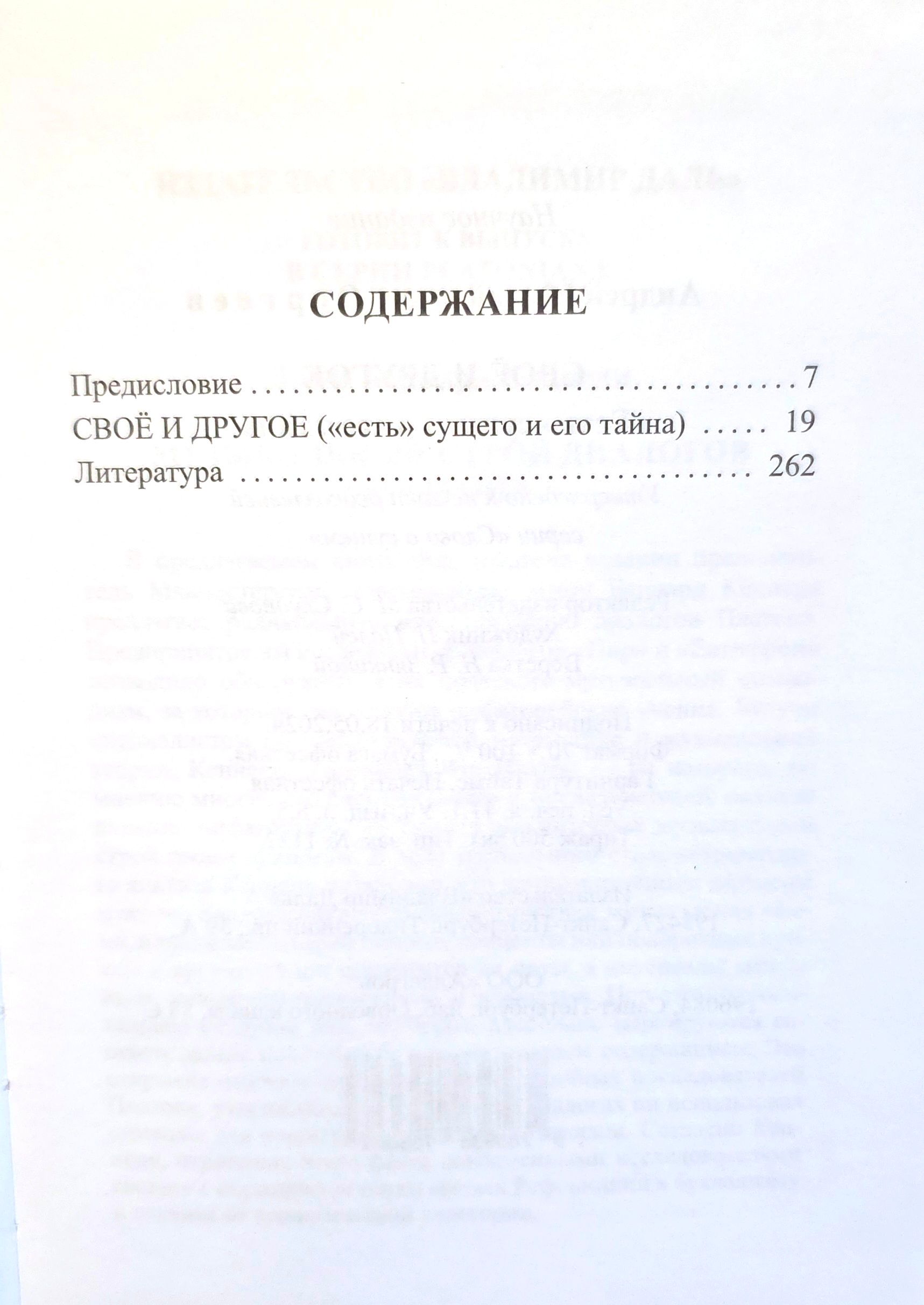 Свою «нездешность» человек знает, но не знает её не прямо и не прямым образом: он её - в себе - угадывает. Невозможность полного освоения души связана с её нездешностью. И это показывает, что душа - это мера другого в человеке: другого всему, всегда и везде. Душа человека даётся, она ему придана. Свое и другое в человеке и соприсутствуют, и отделены друг от друга. В параметре рациональных построений участие другого в жизни человека понимается сугубо теоретически и предстает принципиально опосредованным, в форме знания. Вместе с тем другое указывает на принципиальную открытость человека и на то, что начала и концы человека - не в нём самом, но в другом. Человек живет присутствием другого в себе, и только через другое может способствовать раскрытию бытия сущего. Бытие выставляет сущее и представляет его другому сущему, оно позволяет сущему раскрывать себя иному сущему. В любом отношении есть отнесенность одного к другому. Пограниченое положение человека связанно с тем, что он живёт и в определенности сущего, и в открытости сущего бытитю. Все эти положения являются основаниями и мыслительными стержнями данной книги, позволяя сопрягать разные философские сюжеты и отдельные их аспекты.