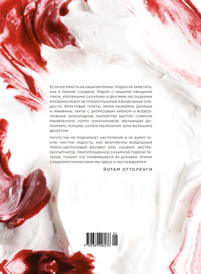 Более 110 рецептов сладкого — печенья, кексов, рулетов, тортов и пирогов, чизкейков, тартов и тарталеток, десертов и конфет — в новом бестселлере от знаменитого шеф-повара Йотама Оттоленги и его помощницы Хелен Го, шеф-кондитера из Австралии. Брауни с тахини и халвой, арахисовое песочное печенье, бисквит «Виктория» с клубникой и кремом на белом шоколаде, пирог с кокосом, миндалем и черникой, пончики с шафранным заварным кремом, тарталетки «Чай брюле», малиновые леденцы… Выбор за вами! «Многие лакомства из этой книги – результат восторженных воскресных дегустаций. Здесь есть и более старые рецепты, которые восходят к самому началу существования бренда Ottolenghi. Они естественным образом эволюционировали благодаря отзывам посетителей и сотрудников. Многие из них – вклад талантливых кондитеров, работавших с нами в эти годы. И наконец, некоторые рецепты мы создали специально для этой книги, когда нам показалось, что в ней не хватает какого-то ракурса, стиля или просто чего-то, что нам нравится из сладкого». (Йотам Оттоленги, Хелен Го)