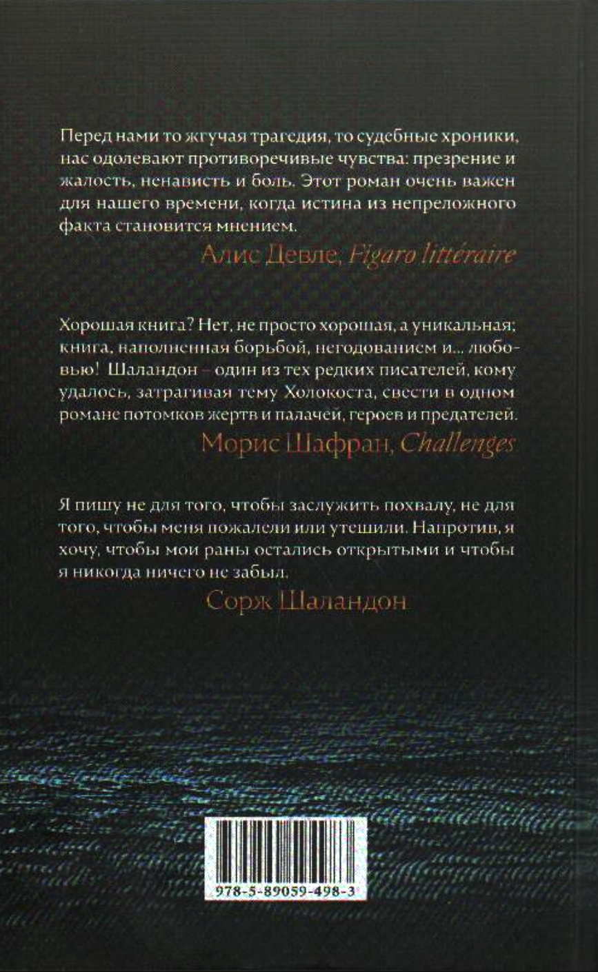 Сорж Шаландон (р. 1952) — современный французский писатель и журналист, автор 10 романов. «Сын негодяя» вошёл в шорт-лист Гонкуровской премии 2021 года.