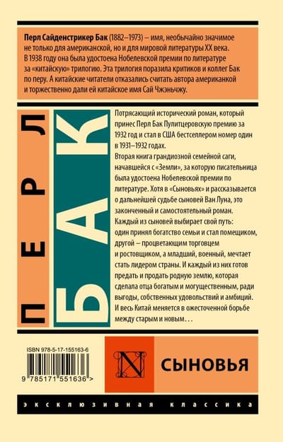 Вторая книга грандиозной семейной саги, начавшейся с «Земли», за которую писательница была удостоена Нобелевской премии по литературе. Хотя в «Сыновьях» и рассказывается о дальнейшей судьбе сыновей Ван Луна, это законченный и самостоятельный роман.