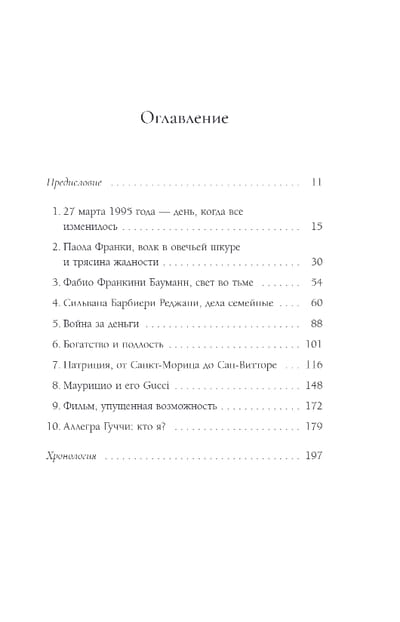 Аллегра Гуччи никогда не давала интервью и публично не обсуждала убийство своего отца Маурицио Гуччи, заказчиком которого была признана ее мать Патриция Реджани. И, возможно, так и не нарушила бы этот своеобразный обет молчания, если бы не фильм Ридли Скотта «Дом Гуччи». Она надеялась, что лента расскажет о династии, их традициях, о создании и развитии бренда. Но сценаристы сконцентрировались на отношениях Маурицио и Патриции, создав очередной остросюжетный блокбастер. Недовольство Аллегры разделили и многие другие, в том числе дизайнер Том Форд. Так на свет появилась эта книга — история полная борьбы, скорби, надежд и разочарований.