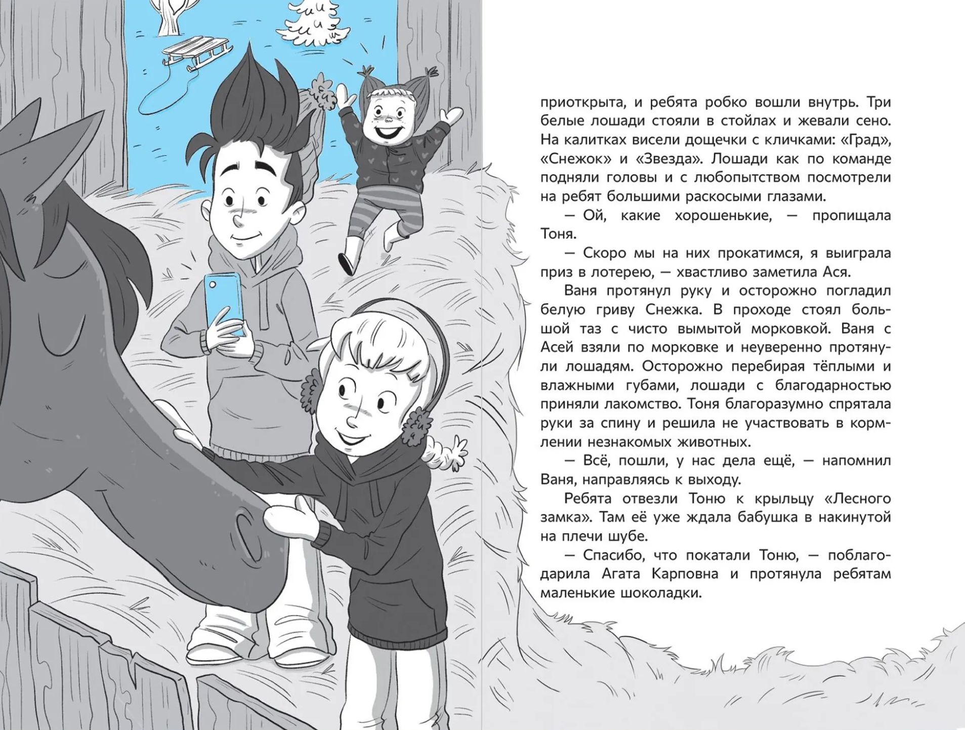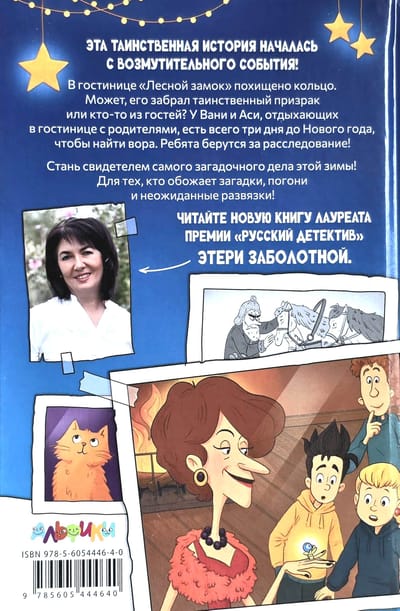 Эта таинственная история началась с возмутительно го события! В гостинице «Лесной замок» похищено кольцо. Может, его забрал таинственный призрак или кто-то из гостей? У Вани и Аси, отдыхающих в гостинице с родителями, есть всего три дня до Нового года, чтобы найти вора. Расследование началось!