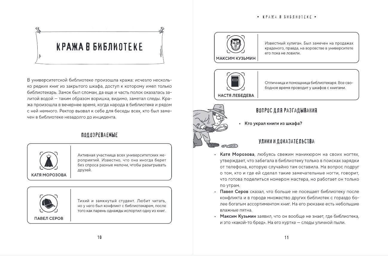 С этой серией книг вы сможете примерить на себя роль настоящего сыщика! В книгах собраны самые разные детективные задачки, начиная от кражи денег и заканчивая жутким убийством. Вас ждёт 40 головоломок любого уровня сложности: их будет под силу разгадать как начинающим детективам, так и специалистам высшей категории.
