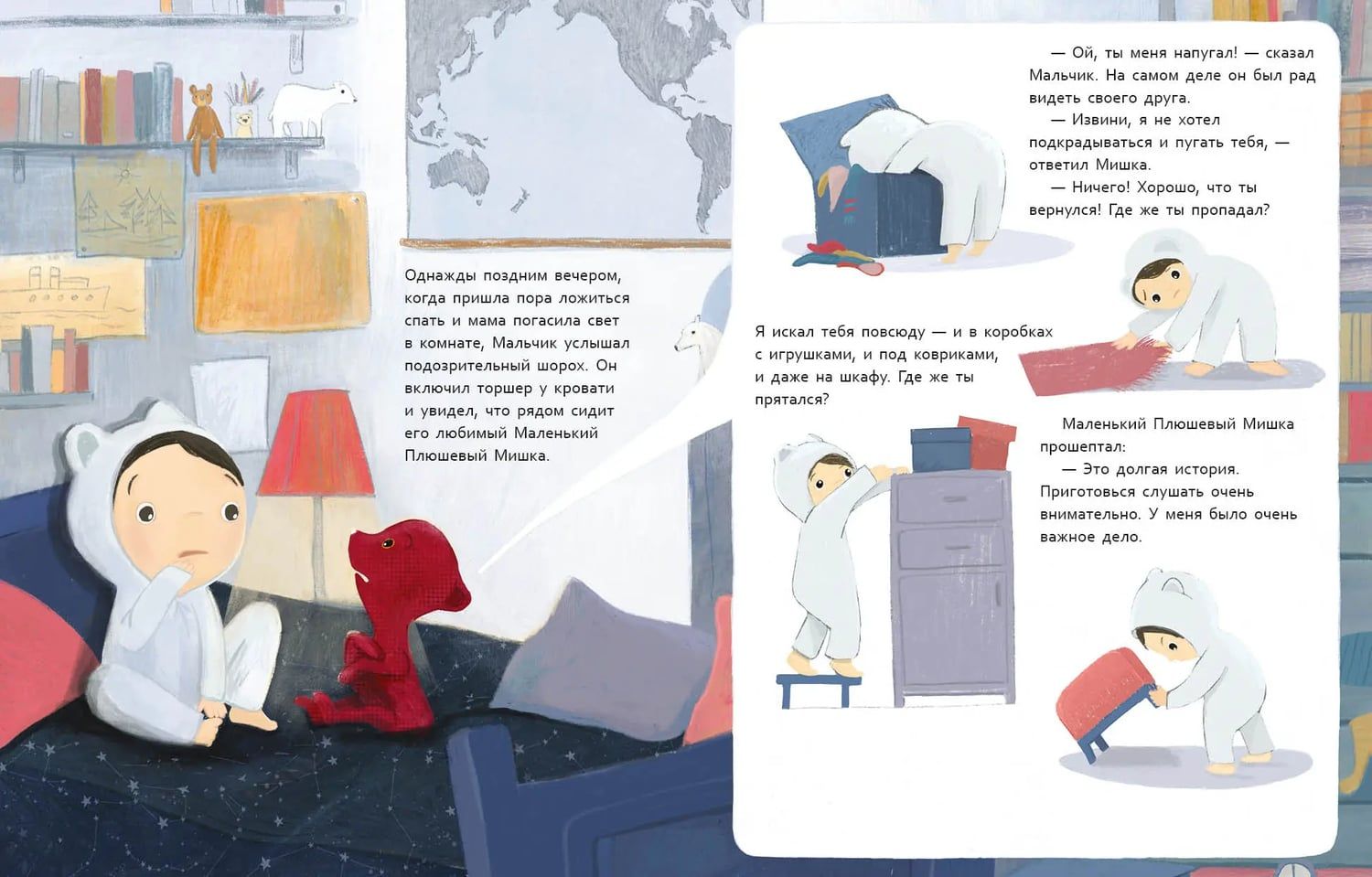 Мальчик повсюду искал своего любимого Плюшевого Мишку. А что, если он не потерялся, а отправился в далёкое путешествие на важное собрание, куда пришли медведи со всех концов света? Что ждёт его на встрече с большими и суровыми медведями? И самое главное — зачем туда позвали Плюшевого Мишку?