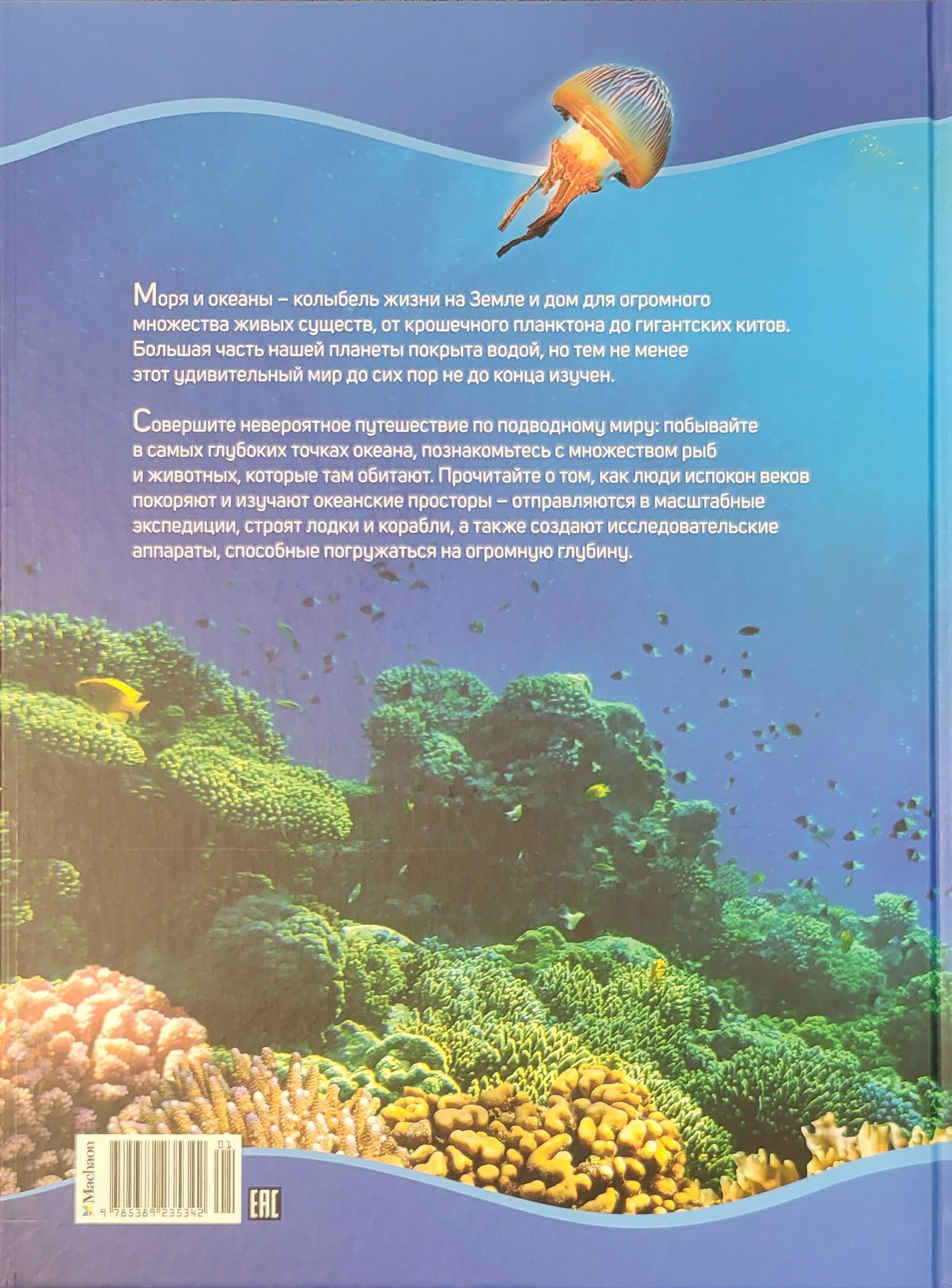 Моря и океаны – колыбель жизни на Земле и дом для огромного множества живых существ, от крошечного планктона до гигантских китов. Большая часть нашей планеты покрыта водой, но тем не менее этот удивительный мир до сих пор не до конца изучен. Совершите невероятное путешествие по подводному миру: побывайте в самых глубоких точках океана, познакомьтесь с множеством рыб и животных, которые там обитают. Прочитайте о том, как люди испокон веков покоряют и изучают океанские просторы – отправляются в масштабные экспедиции, строят лодки и корабли, а также создают исследовательские аппараты, способные погружаться на огромную глубину.