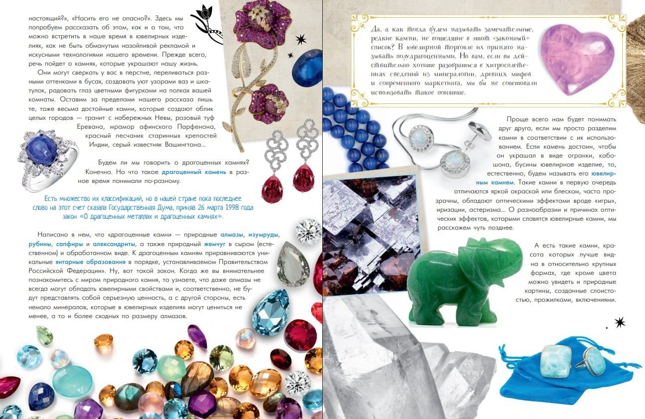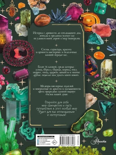 В этой книге вас ждут интереснейшие встречи с популярными самоцветами, на которые люди обратили внимание еще в глубокой древности, и с редкими, малоизвестными, но необычными камнями. История и самые интересные ювелирные украшения, легенды и предания, состав и особенности минерала, крупнейшие месторождения и цены за карат, изящество изделий и ценность необычных камней… Природные минералы и обработанные, облагороженные камни в ювелирных изделиях и различных предметах смотрятся одинаково прекрасно и поражают нас своей уникальностью, яркостью и красотой. Откройте для себя мир самоцветов и пусть путешествие по нему будет для вас неожиданным и интересным!