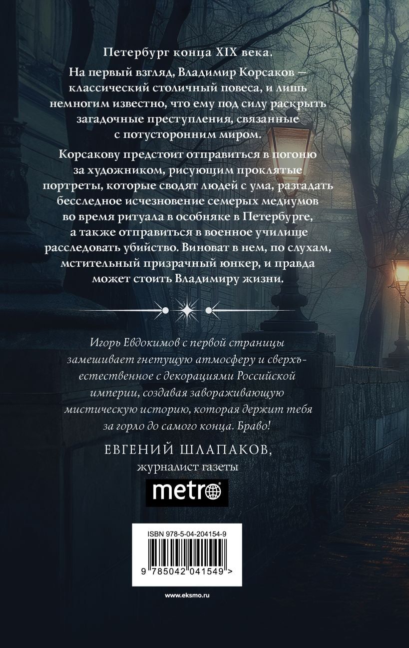 Корсакову предстоит отправиться в погоню за художником, рисующим проклятые портреты, которые сводят людей с ума, разгадать бесследное исчезновение семерых медиумов во время ритуала в особняке в Петербурге, а также отправиться в военное училище расследовать убийство. Виноват в нем, по слухам, мстительный призрачный юнкер, и правда может стоить Владимиру жизни.