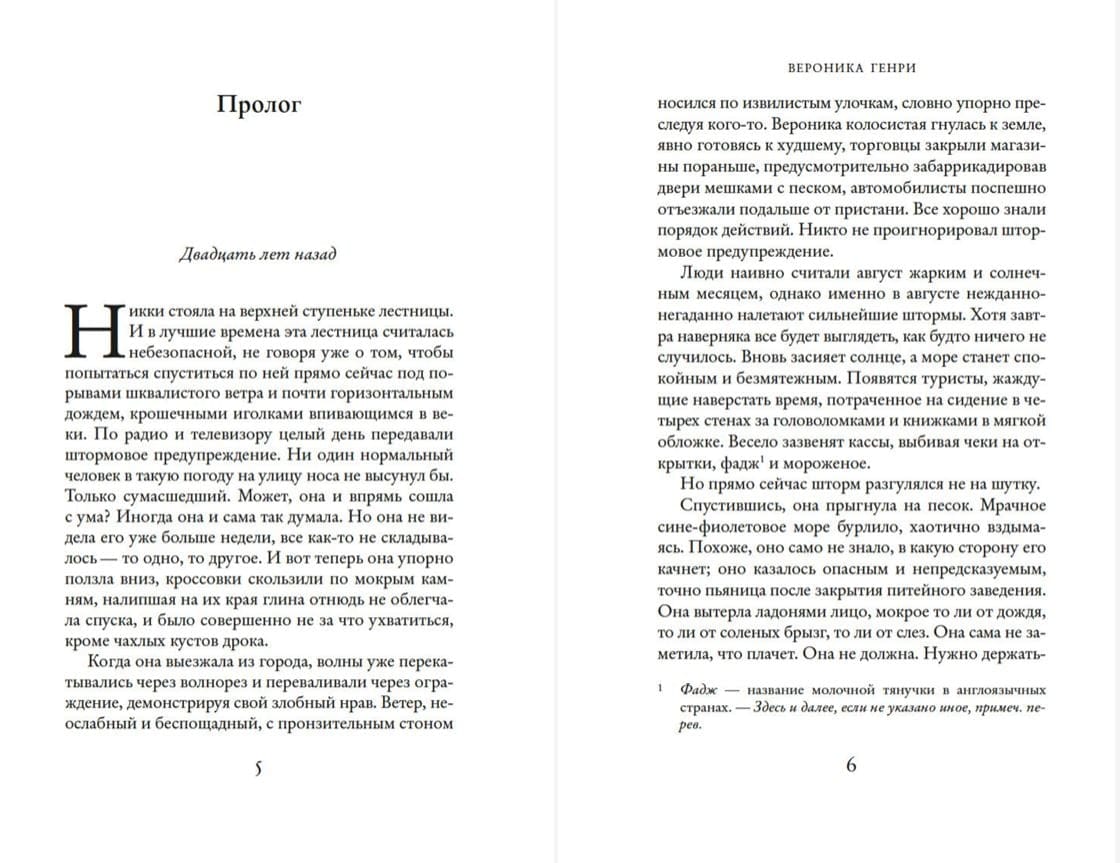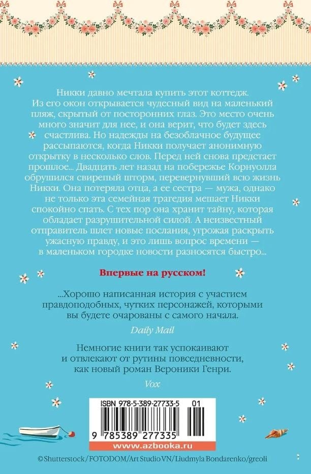 Никки давно мечтала купить этот коттедж. Из его окон открывается чудесный вид на маленький пляж, скрытый от посторонних глаз. Это место очень много значит для нее, и она верит, что будет здесь счастлива. Но надежды на безоблачное будущее рассыпаются, когда Никки получает анонимную открытку в несколько слов. Перед ней снова предстает прошлое... Двадцать лет назад на побережье Корнуолла обрушился свирепый шторм, перевернувший всю жизнь Никки. Она потеряла отца, а ее сестра — мужа, однако не только эта семейная трагедия мешает Никки спокойно спать. С тех пор она хранит тайну, которая обладает разрушительной силой. А неизвестный отправитель шлет новые послания, угрожая раскрыть ужасную правду, и это лишь вопрос времени — в маленьком городке новости разносятся быстро...