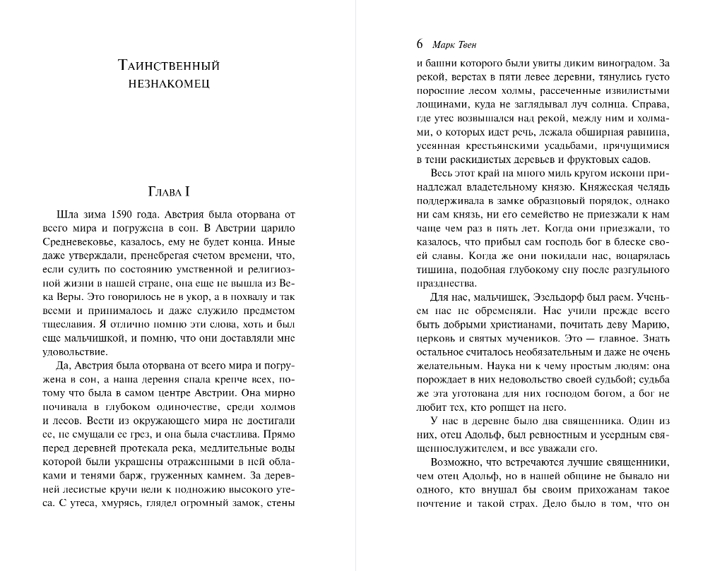 В данном сборнике собраны одни из лучших рассказов американского писателя Марка Твена, раскрывающие весь спектр его таланта: от сатиры и иронии до философии и тонкой человеческой наблюдательности. Повесть «Таинственный незнакомец» задумывалась Марком Твеном в трех разных вариантах, ни один из них он не закончил, в этом сборнике самое первое издание повести. Действие происходит в маленькой деревне Эзельдорф, спрятанной в горах Австрии. Трое юных друзей встречают незнакомца по имени Филипп Траум. Он очаровывает ребят волшебными деяниями, например, создает людей размером с палец, читает их мысли, меняет судьбы людей. Во время долгой беседы выясняется, что Филипп — ангел, да еще и племянник самого дьявола... Мистический персонаж ставит под сомнение природу добра и зла, показывая несовершенства мира, критикуя религиозные догмы и человеческие предрассудки.