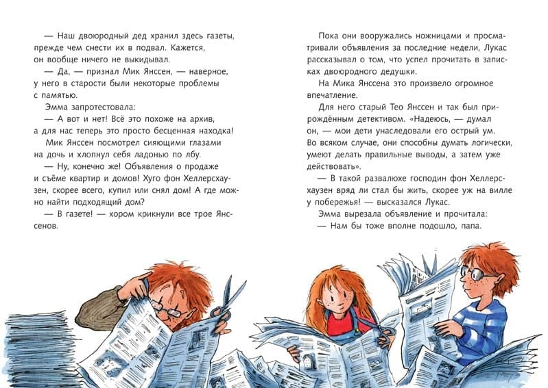 В детективе важнее всего две вещи: интересная загадка и умные персонажи, которые ее разгадывают. В этой книге, как и во всей серии, есть и то и другое. Брат и сестра Лукас и Эмма переезжают на виллу, которая когда-то принадлежала их двоюродному дедушке. Оказывается, дедушка был настоящим суперсыщиком! Ребятам очень повезло – ведь он оставил записную книжку с полезными советами и профессиональными хитростями. И уже в день приезда у них появляется первый клиент – дама, которая просит разыскать её пропавшего мужа. Ясное дело, что Эмма, Лукас и их папа Мик не упустят такого случая. Для новоявленных детективов начинается большое приключение. Ведь дама на самом деле оказалась махровой преступницей, а так называемый муж печатал фальшивые деньги. В этом детективе нет холодящих душу убийств и синих трупов с татуировками. У главных героев нет суперспособностей, они не используют оружие или методы насилия. Зато они очень смышленые, отлично работают в паре и, что греха таить, справляются с расследованием организованнее и быстрее взрослых. Они замечают мелкие, но важные детали, могут запросто разговорить возможных свидетелей, тайно проследить за преступником и вообще с лёгкостью суются туда, куда взрослый и не рискнёт. Язык книги простой и, вместе с тем, абсолютно детско-подростковый, в чем несомненная заслуга переводчика Павла Френкеля. «Таинственный дом у платины» – первая книга в серии «Детективы Северного моря». Всего их будет пять, одна другой интереснее. Рекомендуется детям младшего школьного возраста.