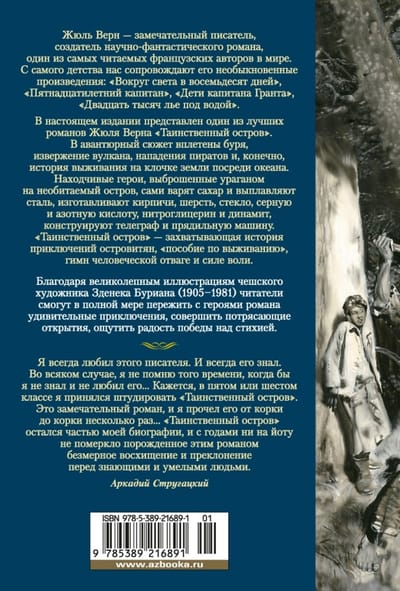 Жюль Верн — замечательный писатель, создатель научно-фантастического романа, один из самых читаемых французских авторов в мире. С самого детства нас сопровождают его необыкновенные произведения: «Вокруг света в восемьдесят дней», «Пятнадцатилетний капитан», «Дети капитана Гранта», «Двадцать тысяч лье под водой». В настоящем издании представлен один из лучших романов Жюля Верна «Таинственный остров». В авантюрный сюжет вплетены буря, извержение вулкана, нападения пиратов и, конечно, история выживания на клочке земли посреди океана. Находчивые герои, выброшенные ураганом на необитаемый остров, сами варят сахар и выплавляют сталь, изготавливают кирпичи, шерсть, стекло, серную и азотную кислоту, нитроглицерин и динамит, конструируют телеграф и прядильную машину. «Таинственный остров» — захватывающая история приключений островитян, «пособие по выживанию», гимн человеческой отваге и силе воли. Благодаря великолепным иллюстрациям чешского художника Зденека Буриана (1905–1981) читатели смогут в полной мере пережить с героями романа удивительные приключения, совершить потрясающие открытия, ощутить радость победы над стихией.