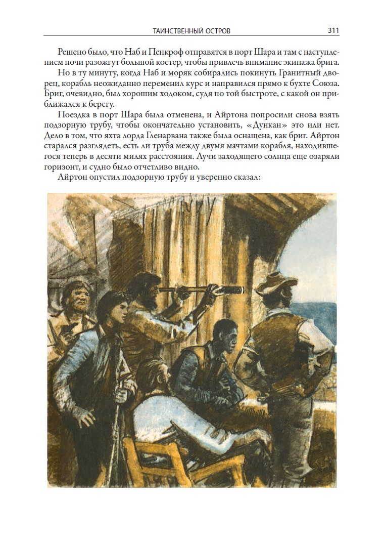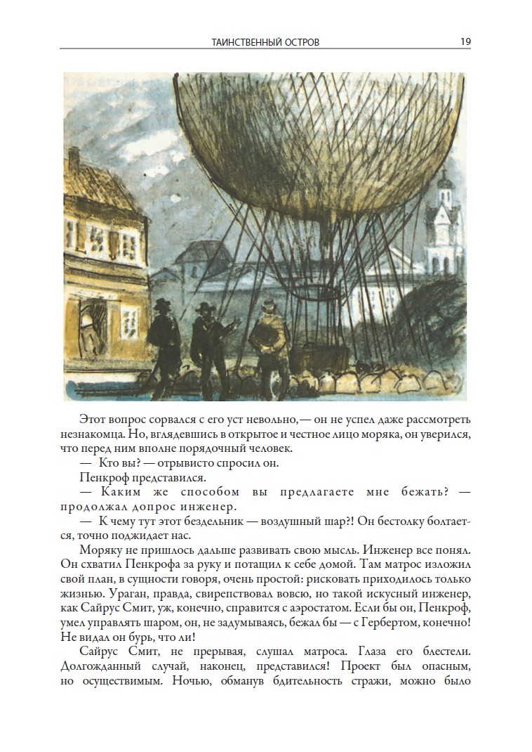 Роман «Таинственный остров» был опубликован через шесть лет после выхода в свет «Детей капитана Гранта». Он стал последним в известной трилогии Жюля Верна, которую объединяют общие герои. В нем продолжает действовать капитан Немо, появившийся во втором романе трилогии — «Двадцать тысяч лье под водой». Роман «Таинственный остров» можно отнести к неувядающему жанру «робинзонады», прародителем которой стал Даниэль Дефо, написавший «Робинзона Крузо». В романе Жюля Верна герои тоже вынуждены выживать на острове, который к тому же скрывает невероятную тайну. Писатель с детства грезил о путешествиях. Он воплотил свою мечту в жизнь, начав странствовать вместе с героями своих романов. Жажда познавать иную жизнь заставляла Жюля Верна почти все свое свободное время проводить в залах Национальной библиотеки. Именно из книг начинающий писатель черпал самые разнообразные познания. Он начал писать пьесы, однако нашел свою нишу в литературе, только став сочинять приключенческие романы, щедро сдобренные историческими экскурсами и географическими описаниями самых разных стран. В сотрудничестве с издателем Пьером-Жюлем Этцелем Жюль Верн создал целую серию «Необыкновенных путешествий». Некоторые входящие в нее произведения мы бы назвали сегодня научной фантастикой. Издание романа в этой книге украшают иллюстрации прекрасного художника Петра Ивановича Луганского. Они подкупают своей достоверностью. Ведь именно так выглядят джунгли с их лианами и огромными папоротниками или голубоватые отроги гор на горизонте. Луганский всегда точен, изображая костюмы героев Жюля Верна или оснастку парусных кораблей. Между тем Петр Иванович никогда не покидал пределов своей страны. Будущий художник появился на свет в 1911 г. в дореволюционной России, в маленьком селе Боково, расположенном на берегу речки Большая Каменка. В те времена это была территория Луганской губернии. Родители Петра были людьми простыми и к искусству никакого отношения не имели. Окончив старейшее художественное училище Харькова, Луганский начал работать в Ленинграде, где сотрудничал с журналом «Костер», издательствами «Детгиз» и «Лениздат». Наверняка глубокое погружение в красочный, создаваемый писателями виртуальный мир скрашивало Луганскому собственную не слишком счастливую жизнь. Война разлучила его с семьей, и до конца своих дней художник жил одиноко и довольно замкнуто, проводя большую часть времени в мастерской, находившейся в известном Доме художников на Песочной набережной.