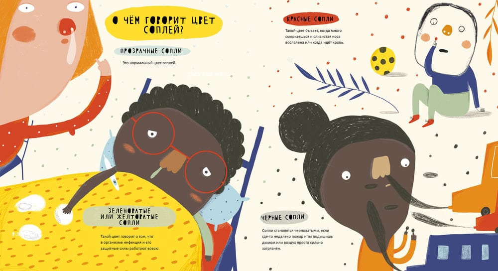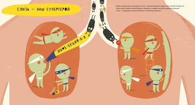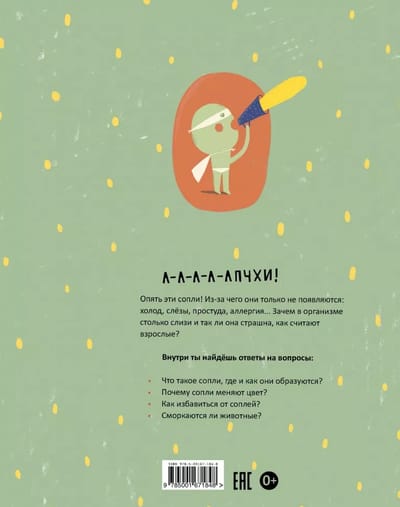 Опять эти сопли! Из-за чего они только не появляются: холод, слёзы, простуда, аллергия… Зачем в организме столько слизи и так ли она страшна, как считают взрослые? Из этой книги вы узнаете, какого цвета бывают сопли (слыхали, к примеру, про чёрные?), зачем они нам вообще нужны, как правильно сморкаться и так ли действительно важно регулярно освобождать нос от слизи. В конце книги вас ждёт забавная игра с вопросами, ответив на которые вы сможете считать себя абсолютным знатоком соплей!