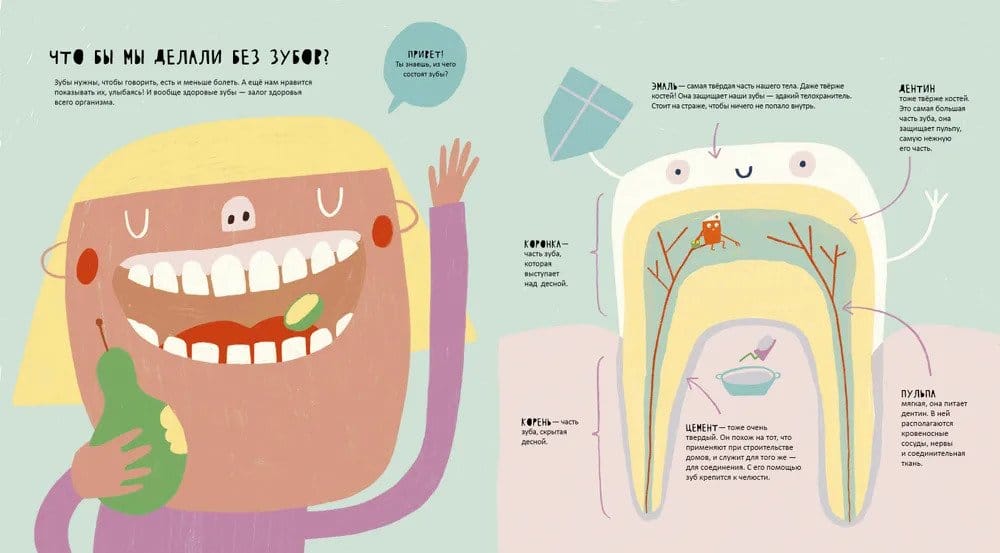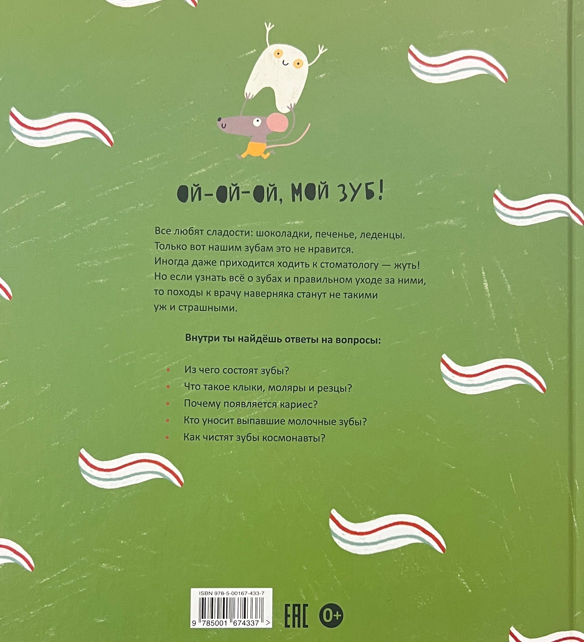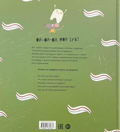 Ой-ой-ой, мой зуб! Все любят сладости: шоколадки, печенье, леденцы. Только вот нашим зубам это не нравится. Иногда даже приходится ходить к стоматологу - жуть! Но если узнать всё о зубах и правильном уходе за ними, то походы к врачу наверняка станут не такими уж и страшными. Внутри ты найдёшь ответы на вопросы: - Из чего состоят зубы? - Что такое клыки, моляры и резцы? - Почему появляется кариес? - Кто уносит выпавшие молочные зубы? - Как чистят зубы космонавты?