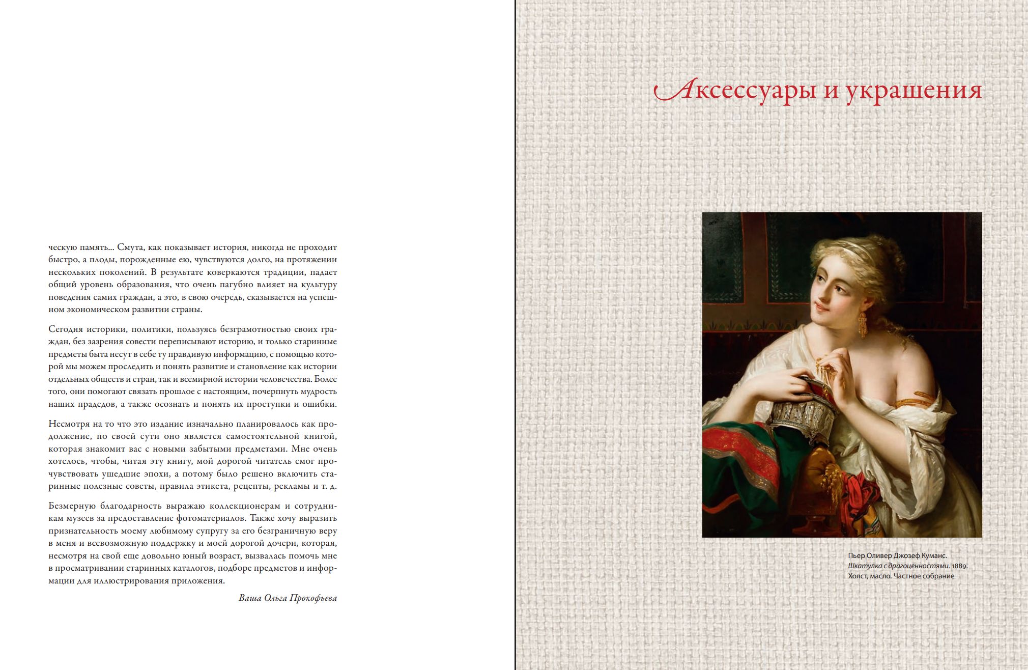 Главная цель книги Ольги Прокофьевой – стать связующим звеном между эпохами, познакомить с предметами быта и духовным миром прошлого. Мир вещей, подобно некой второй реальности, сопровождает человека от рождения до смерти. Все мы окружаем себя вещами, любимыми и дорогими. Одни предметы возникают, другие выходят из употребления. Последние или исчезают совсем, или сохраняются в музейных коллекциях и частных собраниях. Автор предпринимает попытку систематизировать достоверную информацию о «забытых» предметах. Основой для этого стали архивные документы, старинные каталоги, картины, фотографии и множество других источников. Книга рассчитана на широкий круг читателей, которым хотелось бы приоткрыть занавес прошлого и взглянуть на загадочные старинные предметы со знанием дела.