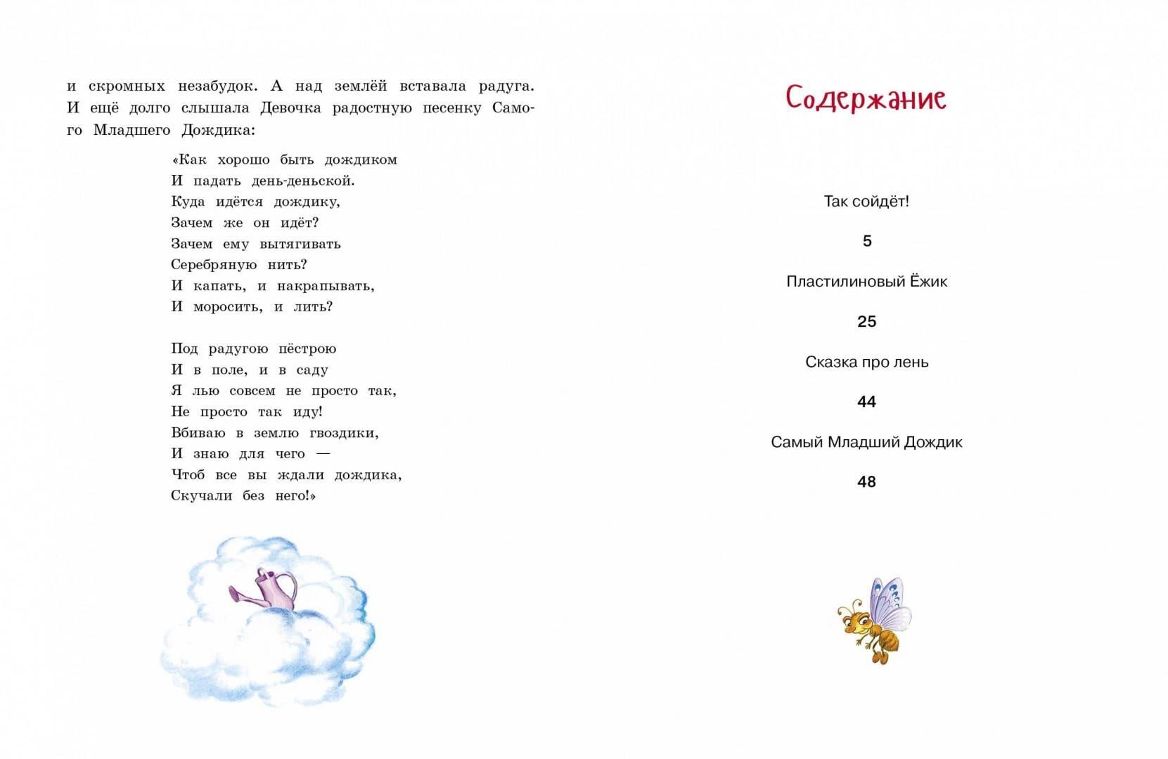 Слышите задорную песню: «Я мастер на все руки! На все дела мастак... »? Это Заяц-весельчак скачет по лесу и ищет, кому бы помочь. Но ни одно дело он не может довести до конца и всем неизменно отвечает: «И так сойдёт!». Неужели горе-мастер так ничему и не научится? Открывай скорее книжку и узнаешь! А ещё тебя ждёт встреча с Пластилиновым Ёжиком, который помогал мальчику Вите собирать гербарий, с тюленем, который продавал на рынке лень, и с Самым Младшим Дождиком, который мечтал сделать что-то необыкновенное!
