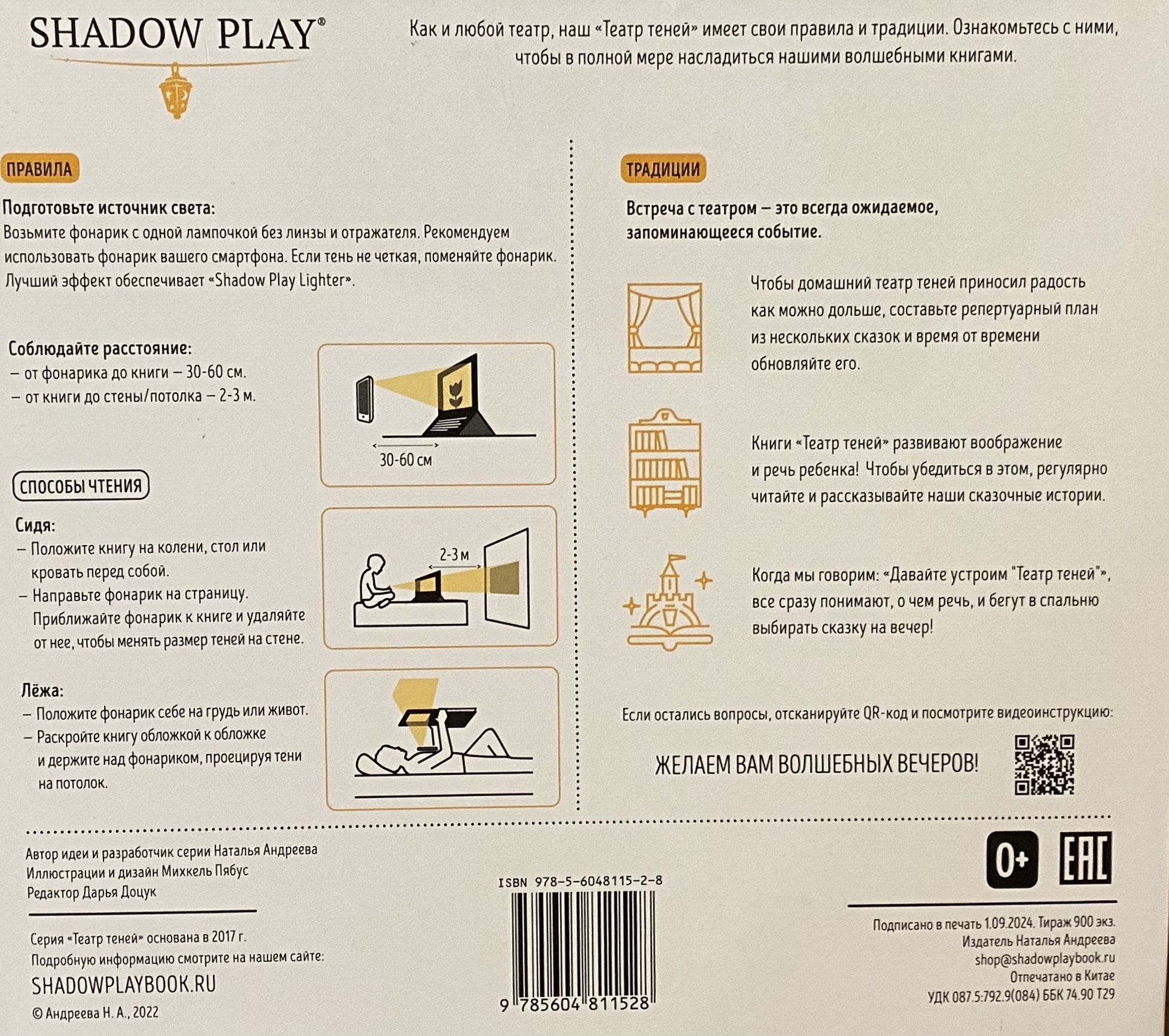 Данная подарочная литература представляет собой картонные книжки-игрушки с твердой обложкой, помогающая развернуть настоящий домашний кукольный театр: фигурки персонажей детально вырезаны не только по контуру, но также изнутри, что делает тень каждой сцены максимально интересной и необычной.