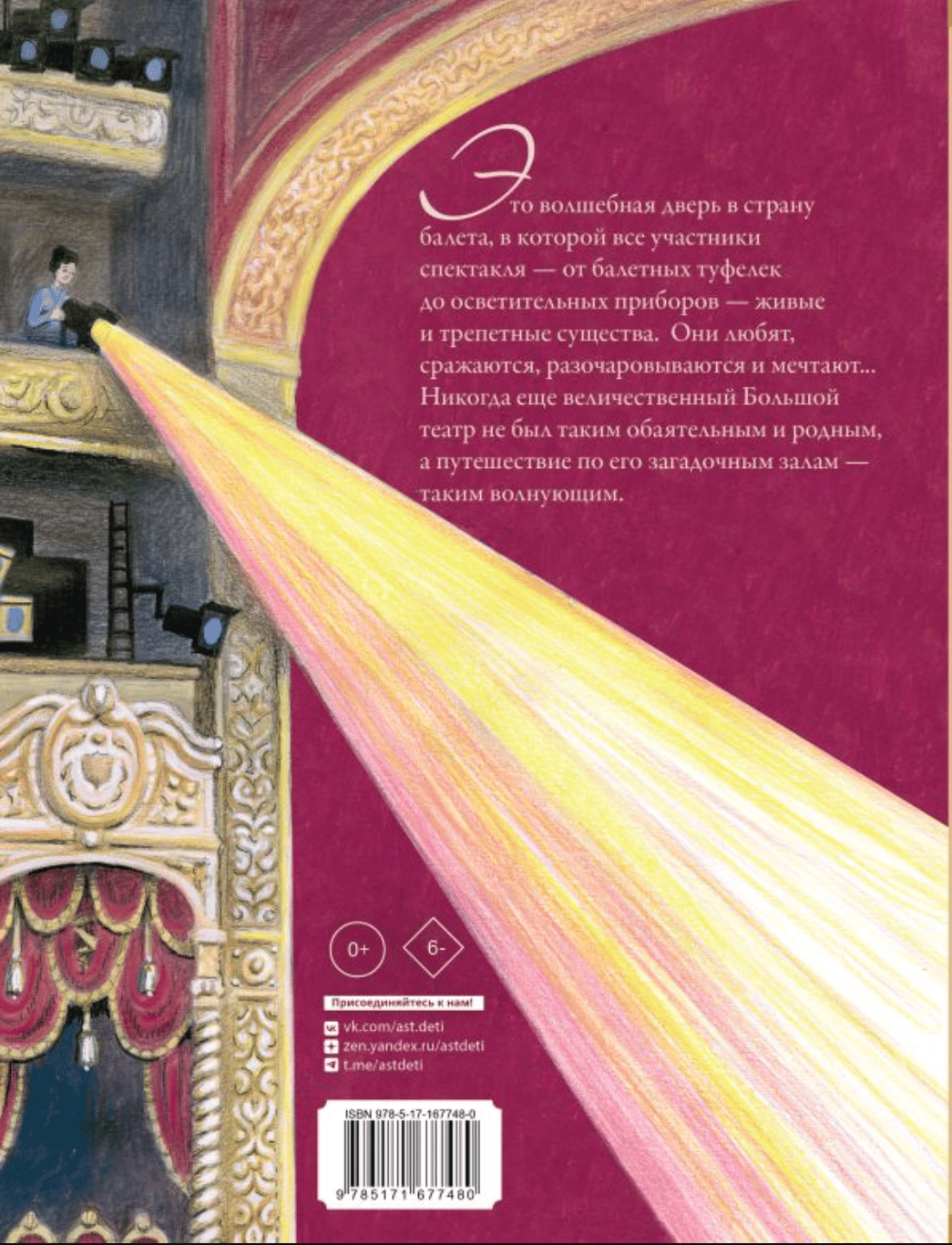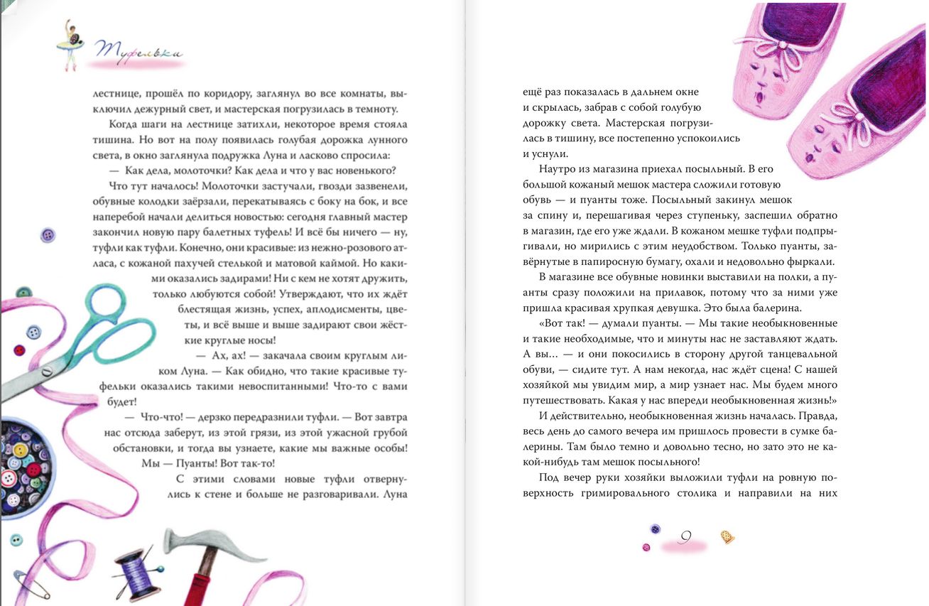 Нежные, лёгкие и волшебные сказки от знаменитой балерины, народной артистки России Илзе Лиепы.  Хотелось ли тебе когда-нибудь заглянуть хотя бы одним глазком в невероятный мир балета? Всё здесь – от пуант до ярких софитов – оживает, стоит лишь приоткрыть тяжёлый бархатный занавес.  В книгу вошли следующие сказки: Туфельки; Лягушка Балерушка; Когда ложи поспорили; Горячее сердце; Бабушкина сказка; Война котов и машин; Как Юбочка влюбилась в Колет; Мышь-критикан; Булочки. Илзе Лиепа - балерина, актриса театра и кино. Лауреат национальной театральной премии «Золотая маска».