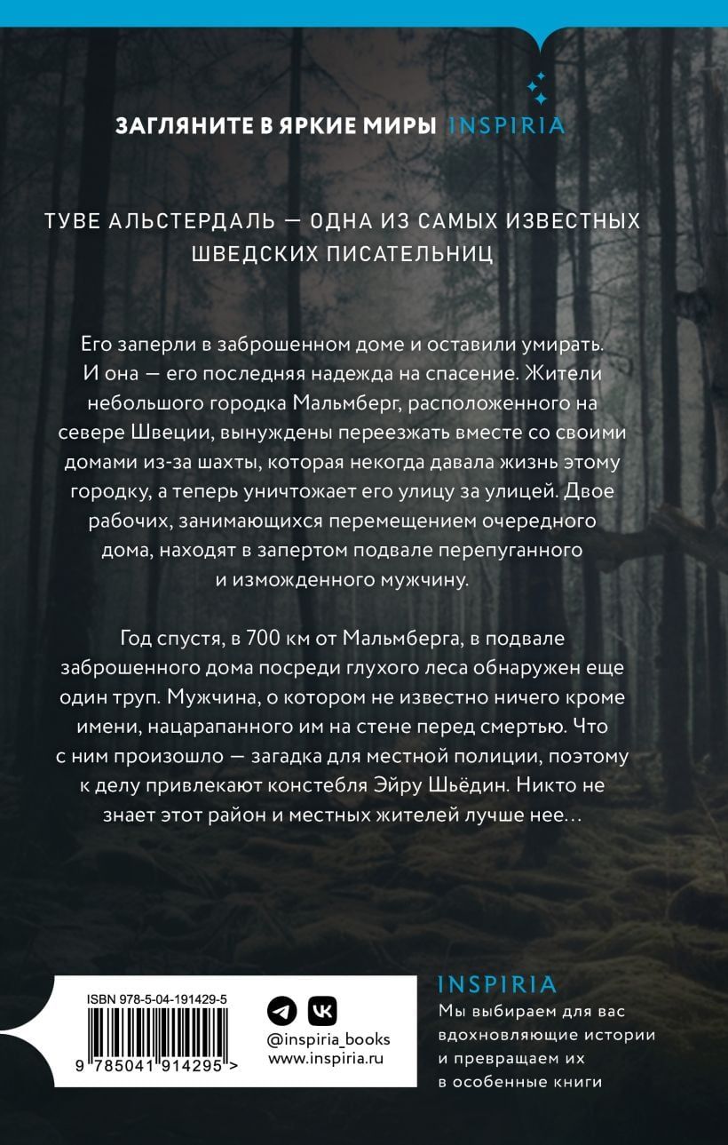 Жители небольшого городка Мальмберг, расположенного на севере Швеции, вынуждены переезжать вместе со своими домами из-за шахты, которая некогда давала жизнь этому городку, а теперь уничтожает его улицу за улицей. Двое рабочих, занимающихся перемещением очередного дома, находят в запертом подвале перепуганного и изможденного мужчину. Год спустя, в 700 км от Мальмберга, в подвале заброшенного дома посреди глухого леса обнаружен еще один труп. Мужчина, о котором неизвестно ничего кроме имени, нацарапанного им на стене перед смертью. Что с ним произошло — загадка для местной полиции, поэтому к делу привлекают констебля Эйру Шьёдин. Никто не знает этот район и местных жителей лучше нее…