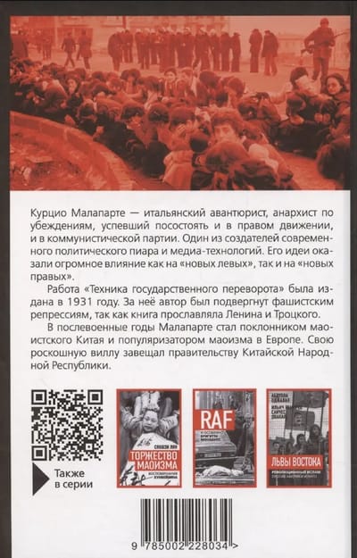 «Техника государственного переворота» была написана в 1931 году в Париже после того, как Малапарте поссорился с Итальянской фашистской партией. Впервые она была опубликована на французском языке и вызвала многочисленные споры. Автора обвинили в цинизме и лицемерии, итогом чего стало заключение Малапарте в итальянскую тюрьму с формулировкой: распространение антифашистской пропаганды за рубежом.