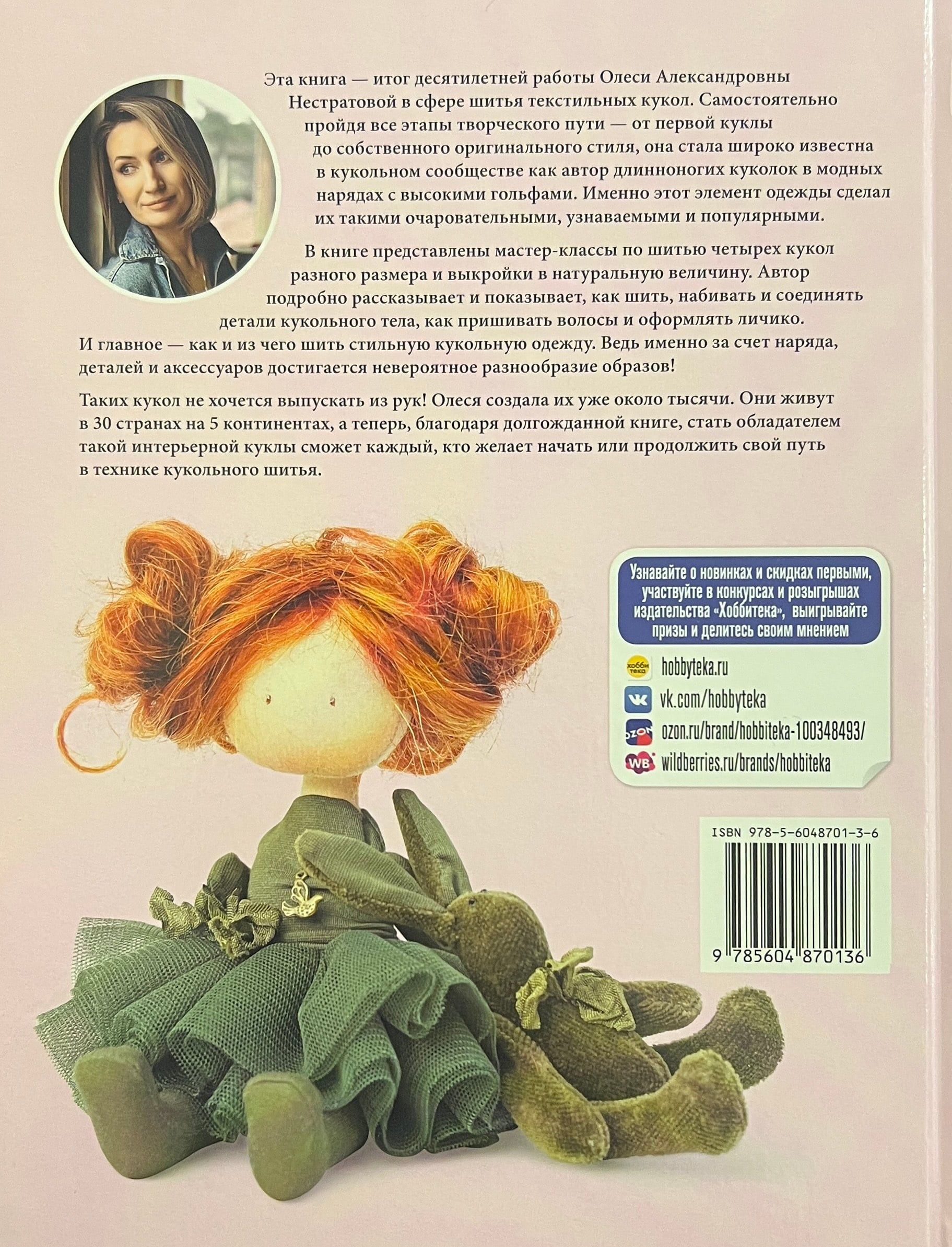 Эта книга — итог десятилетней работы Олеси Нестратовой в сфере шитья текстильных кукол. Самостоятельно пройдя все этапы творческого пути – от первой куклы до собственного оригинального стиля, она стала широко известна в кукольном сообществе, как автор длинноногих куколок в модных нарядах с высокими гольфами. Именно этот элемент одежды сделал их такими очаровательными, узнаваемыми и популярными.
