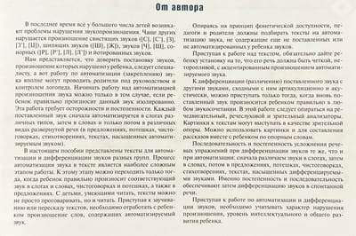 В пособии представлены картинки и тексты для автоматизации и дифференциации тех звуков, произношение которых вызывает наибольшие трудности у детей.