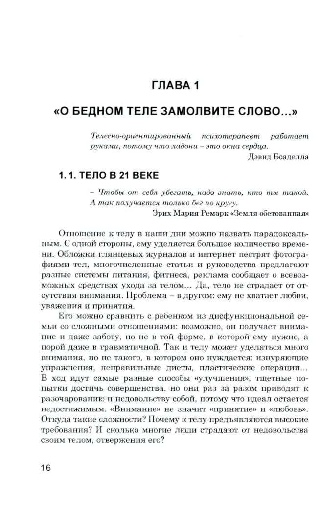 Книга «Телесно-ориентированная психотерапия: очно и онлайн» адресована как профессионалам (психологам, психотерапевтам, телесным практикам), так и широкому кругу читателей. Она написана доступным языком и имеет практическую направленность: включает 170 упражнений. Они поделены на 10 тематических разделов (работа с границами, с эмоциями, самооценка и т. д.). Вы сможете узнать психологическую символику тела, взаимосвязь телесной и психологической сферы, принципы телесно-ориентированной психотерапии (ТОП), особенности индивидуальной и групповой работы, эффективные практические техники работы с телом.