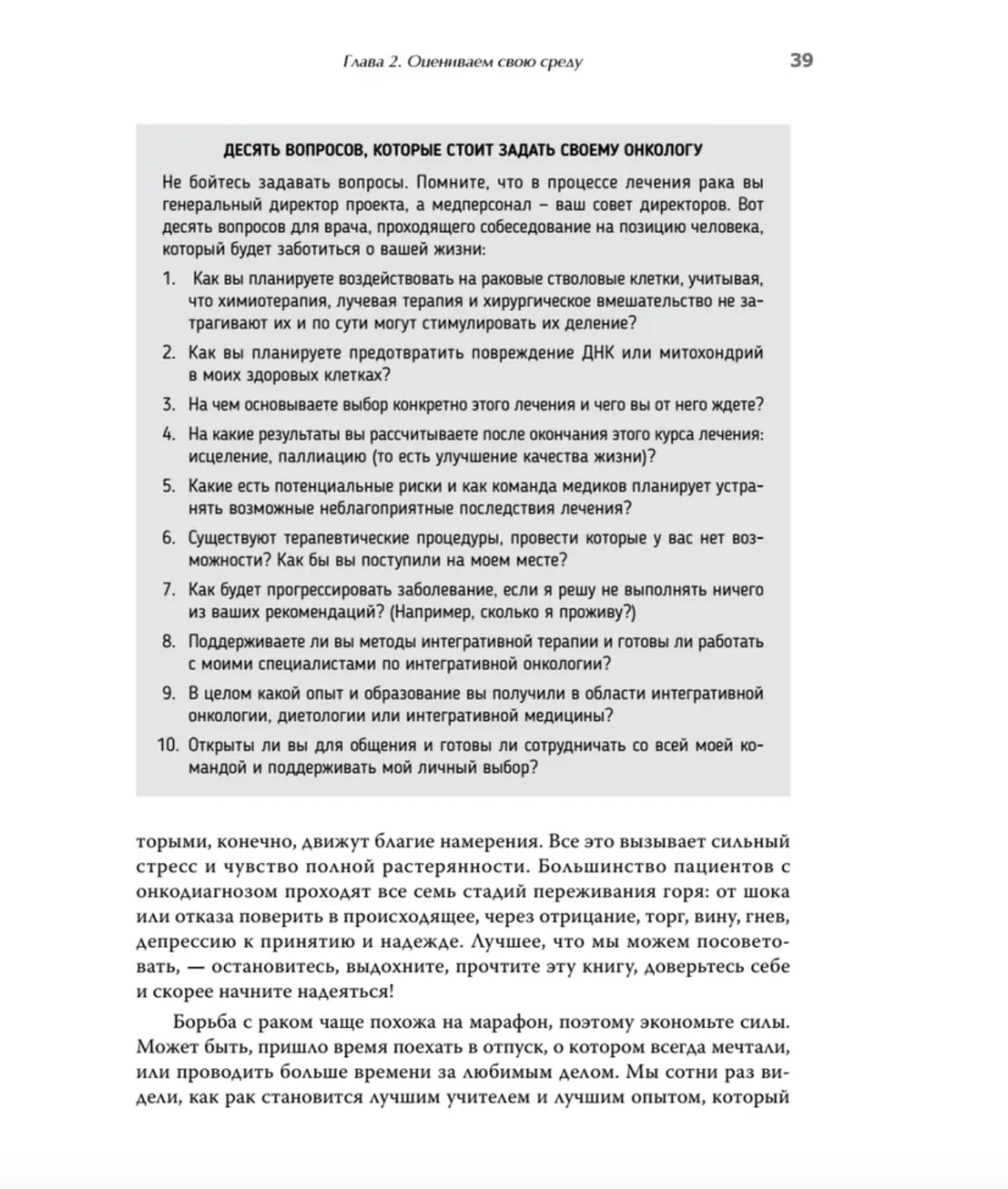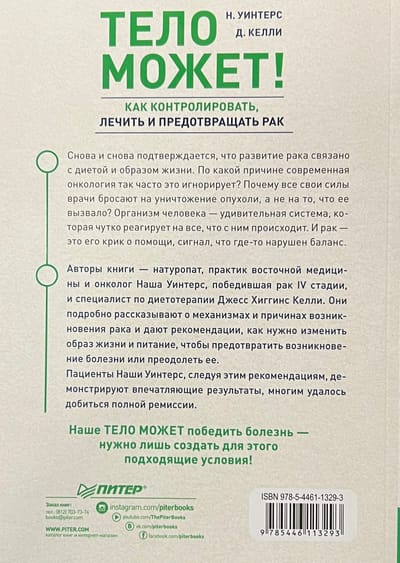 Авторы книги — натуропат, практик восточной медицины и онколог Наша Уинтерс, победившая рак IV стадии, и специалист по диетотерапии Джесс Хиггинс Келли. Они подробно рассказывают о механизмах и причинах возникновения рака и дают рекомендации, как нужно изменить образ жизни и питание, чтобы предотвратить возникновение болезни или преодолеть ее.
