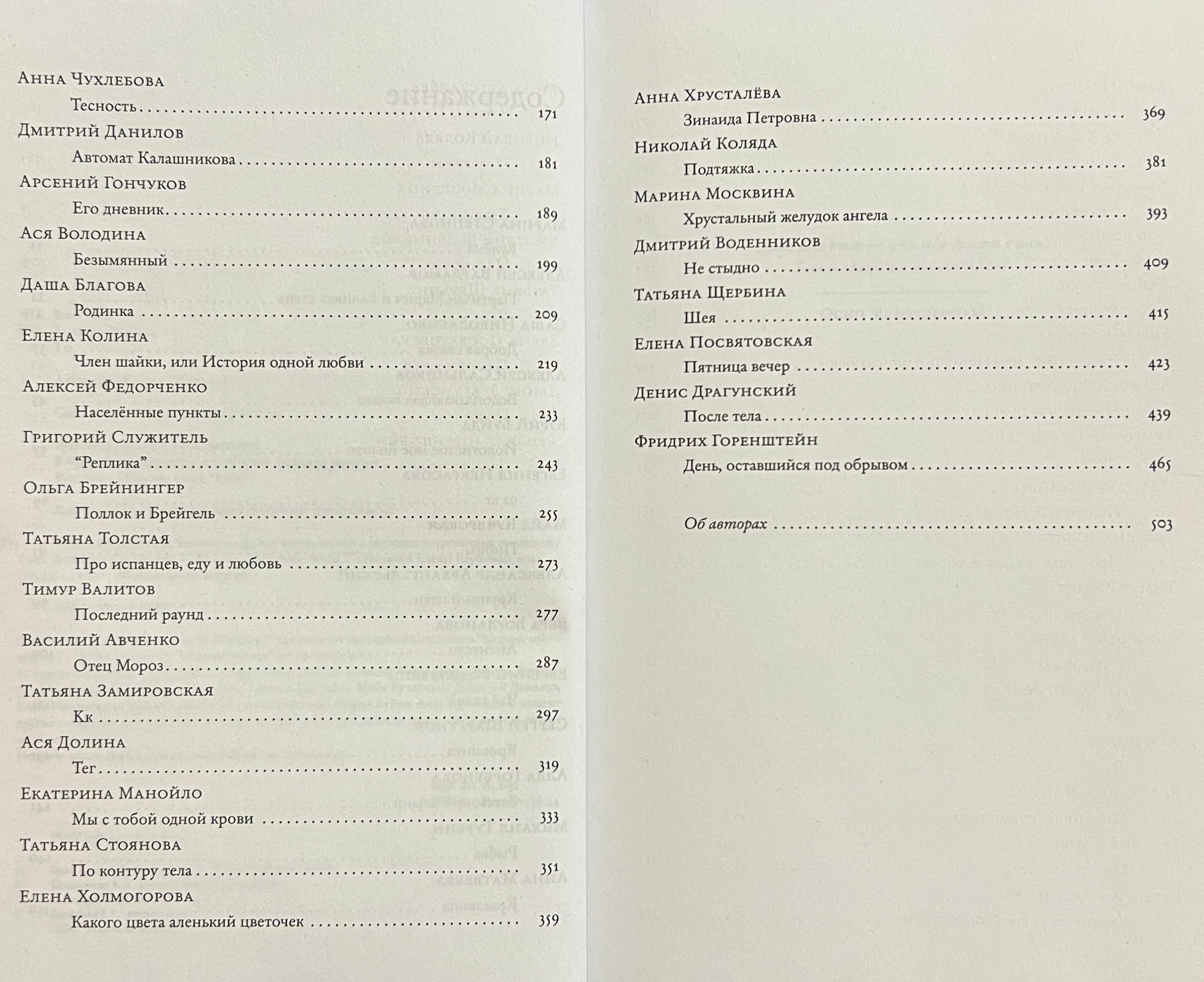 Выписанные честно и точно, с щемящей нежностью и бескомпромиссной жесткостью, тела в этих текстах дарят наслаждения, причиняют страдания, рожают детей или оставляют за собой право не продолжаться в еще одном, теперь уже чужом — и часто чуждом — теле.