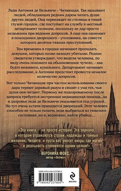 Леди Антония де Вельвиче — Читающая. Так называют тех, кто обладает редким даром читать души других людей. Она переезжает из столицы в тихий глухой городок, где поступает на службу в местный департамент полиции, поскольку ее дар просто незаменим при ведении допросов. А еще она нанимает в помощники дворецкого — уголовника, на совести которого десятки тяжких преступлений.