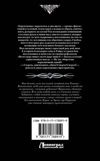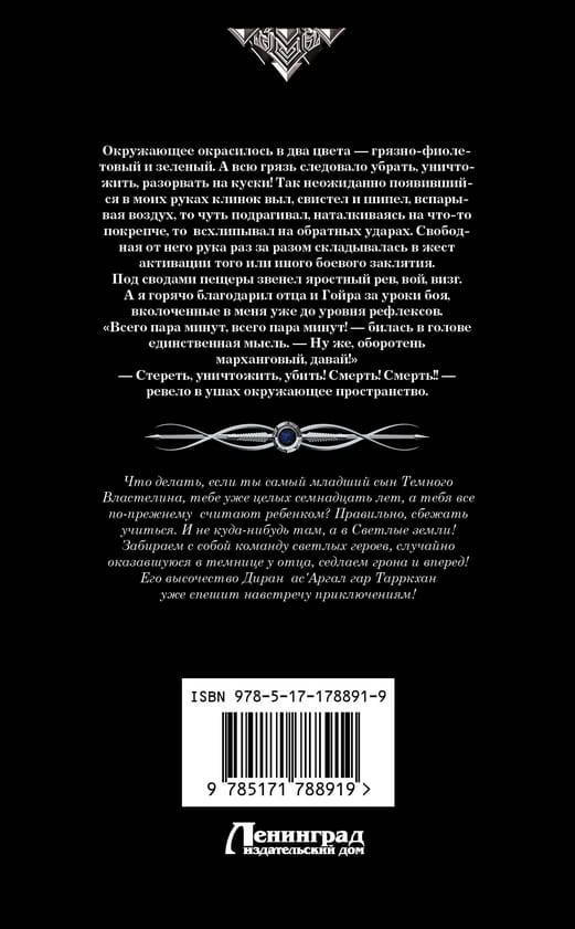 Что делать, если ты самый младший сын Темного Властелина, тебе уже целых семнадцать лет, а тебя все по-прежнему считают ребенком? Правильно, сбежать учиться. И не куда-нибудь там, а в Светлые земли! Забираем с собой команду светлых героев, случайно оказавшуюся в темнице у отца, седлаем грона и вперед! Его высочество Диран ас’Аргал гар Тарркхан уже спешит навстречу приключениям!
