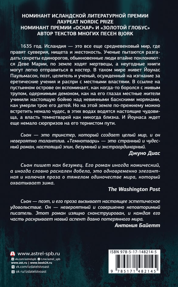 1635 год. Исландия – это все еще средневековый мир, где правят суеверия, нищета и жестокость. Ученые пытаются разгадать секреты единорогов, обыкновенные люди втайне поклоняются Деве Марии, по земле ходят мертвецы, а неугодные книги могут легко отправиться в костер. В таком мире живет Йоунас Паульмасон, поэт, целитель и ученый, осужденный на изгнание за еретические учения и распри с местными властями. В ссылке на пустынном острове он вспоминает, как когда-то боролся с живым трупом, одержимым демоном, как на его глазах местные жители учинили настоящую бойню над невинными баскскими моряками, как умерли трое его детей. Но на этой земле по-прежнему можно встретить немало чудес, в этих водах водятся настоящие чудовища, а власть темнотварей как никогда близка. И Йоунаса ждет еще немало сюрпризов на его тернистом пути.