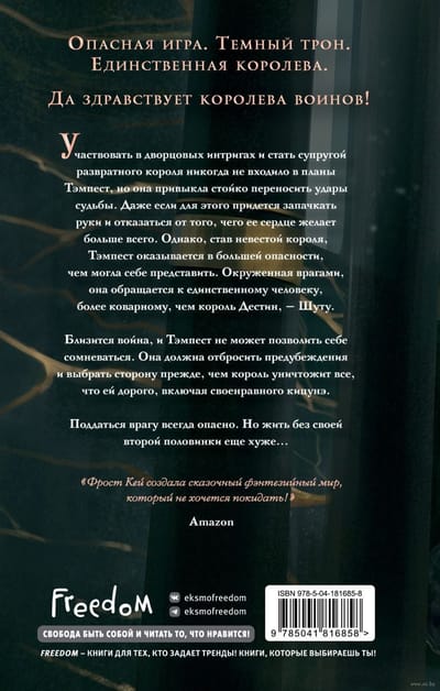 Участвовать в дворцовых интригах и стать супругой развратного короля никогда не входило в планы Тэмпест, но она привыкла стойко переносить удары судьбы. Даже если для этого придется запачкать руки и отказаться от того, чего ее сердце желает больше всего. Однако, став невестой короля, Тэмпест оказывается в большей опасности, чем могла себе представить. Окруженная врагами, она обращается к единственному человеку, более коварному, чем король Дестин, — Шуту.