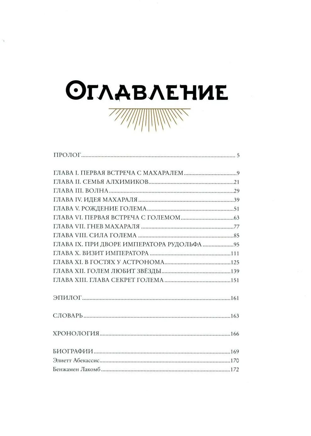 На туманной улице зимней Праги раввин вдыхает жизнь в созданного им Голема, чтобы тот защитил обитателей еврейского квартала от нападений. На дворе середина XVI века, тревожное время для евреев, и все их надежды на благополучную жизнь теперь связаны с этим фантастическим существом из речной глины. Но местные власти, обеспокоенные таким поворотом дел, похищают десятилетнюю Зельмиру с улицы Алхимиков. Сумеет ли магический Голем исполнить свое предназначение и вернуть девочку домой? История французской писательницы Элиетт Абекассис, оживленная иллюстрациями знаменитого Бенжамена Лакомба, впервые на русском языке.