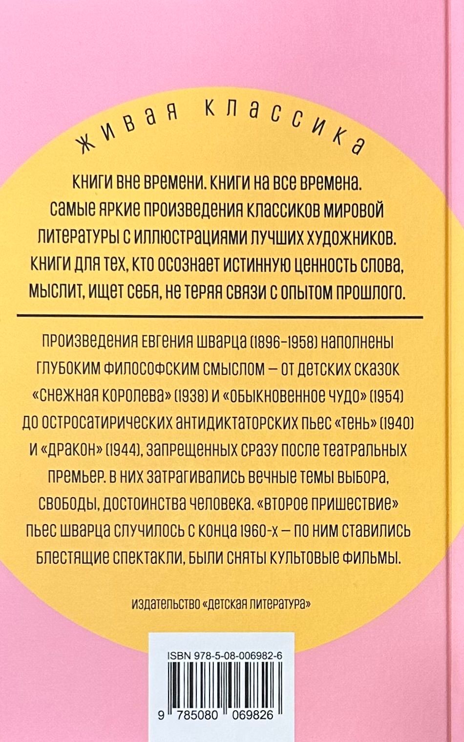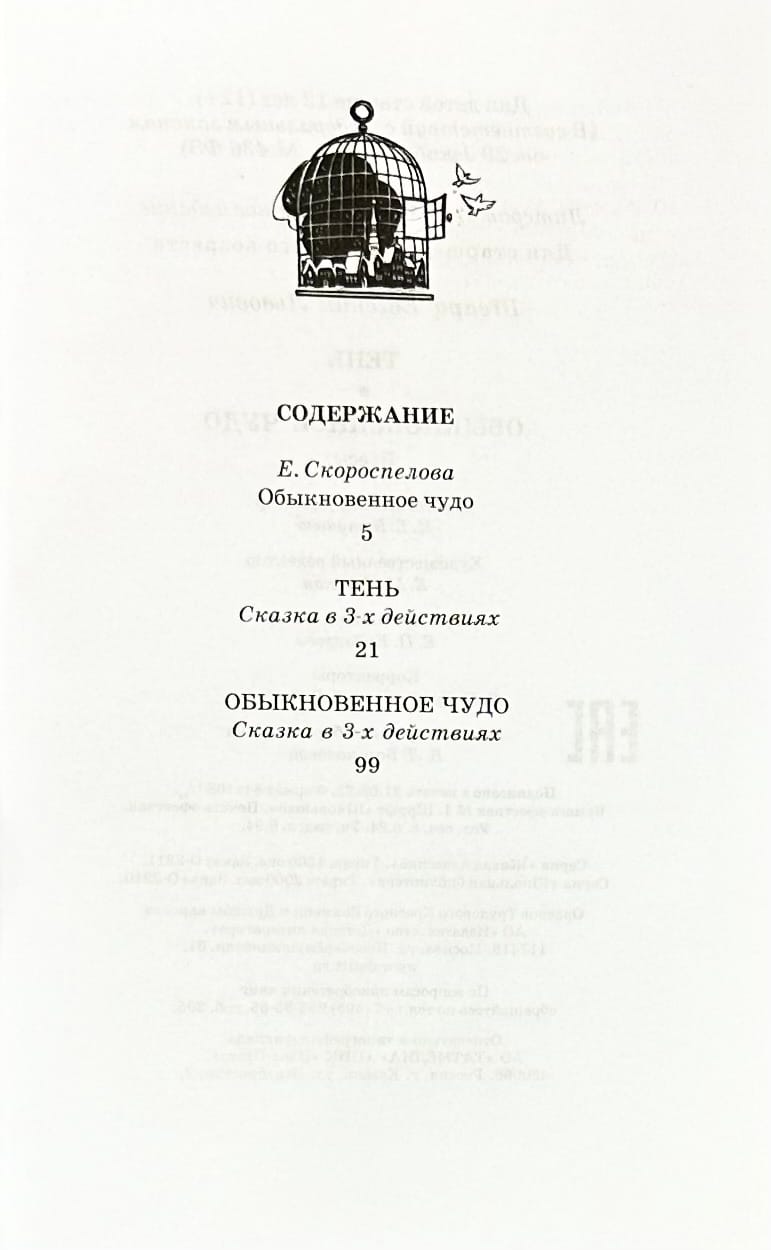 В сборник замечательного драматурга, сказочника, сценариста Евгения Шварца (1896-1958) вошли пьесы-сказки «‎Тень»‎ и «‎Обыкновенное чудо»‎ , полные светлого поэтического очарования, глубоких философских раздумий и человеческой доброты две пьесы-сказки.
