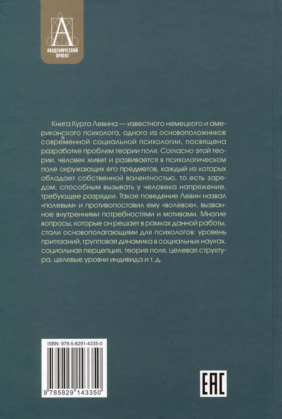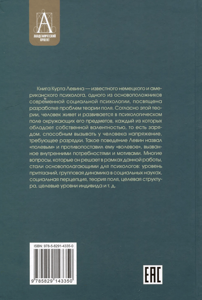 Книга Курта Левина — известного немецкого и американского психолога, одного из основоположников современной социальной психологии, посвящена разработке проблем теории поля. Согласно этой теории, человек живет и развивается в психологическом поле окружающих его предметов, каждый из которых обладает собственной валентностью, то есть зарядом, способным вызывать у человека напряжение, требующее разрядки. Такое поведение Левин назвал «полевым» и противопоставил ему «волевое», вызванное внутренними потребностями и мотивами. Многие вопросы, которые он решает в рамках данной работы, стали основополагающими для психологов: уровень притязаний, групповая динамика в социальных науках, социальная перцепция, теория поля, целевая структура, целевые уровни индивида и т. д.