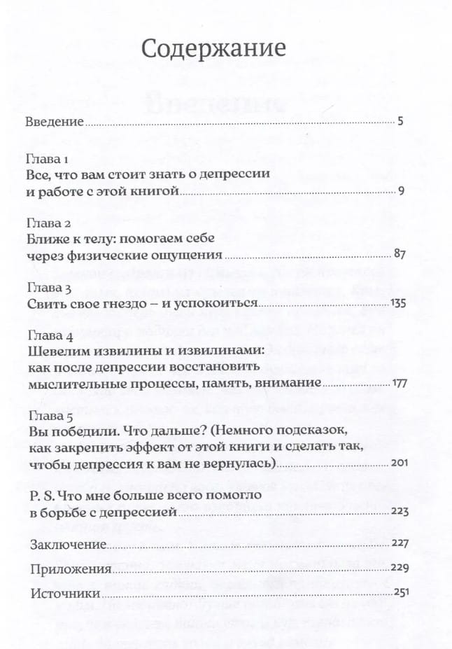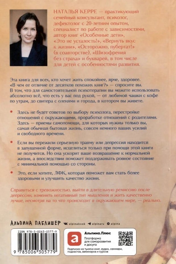 Это книга практической помощи людям, находящимся в депрессии. Опираясь на собственный опыт и обширную практику, психолог Наталья Керре рассказывает, что необходимая для выхода из депрессивных эпизодов поддержка может быть найдена в том, что нас окружает, и в том, что нам приятно (вещи, события, ощущения, места). Методика автора не потребует от вас резкой перемены образа жизни, огромных усилий или ресурсов, но она поможет вам справиться с тревожностью, выйти в длительную ремиссию после депрессии, изменить негативный тип мышления и улучшить качество жизни.