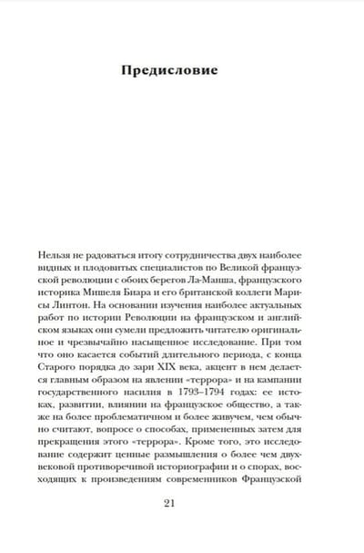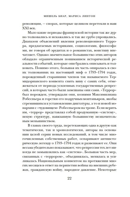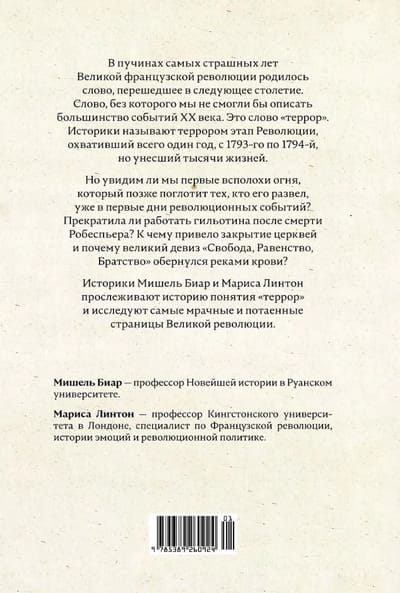 Французская революция XVIII века стала парадоксом для всего мира. Борьба за права человека и свободу народоизъявления обернулась кровавыми репрессиями и массовыми казнями. Революция уравняла права граждан перед законом — и вместе с тем их шансы оказаться под лезвием гильотины. Именно этому удивительному парадоксу посвящено исследование Мишель Биар и Марисы Линтон, вместе с которыми читатель исследует самые темные события Революции — время террора. Был ли террор хаотичным порождением казней Максимилиана Робеспьера или тщательно спланированной революционной политикой? Какие философские идеи, страхи и надежды подпитывали распространение насилия среди народа и почему политики пренебрегли правами человека, начав «нарушать закон ради спасения закона»?