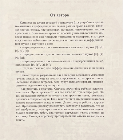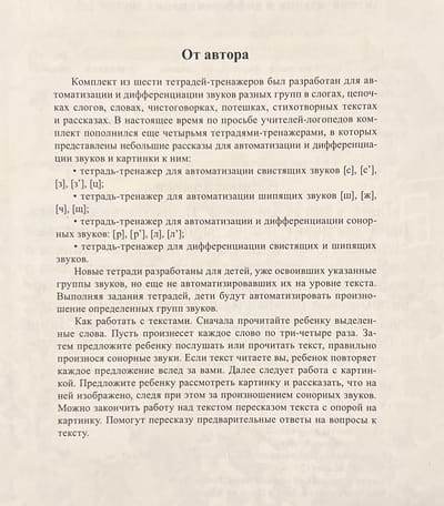 Тетрадь-тренажер для автоматизации и дифференциации сонорных звуков [р], [р’], [л], [л’] в рассказах